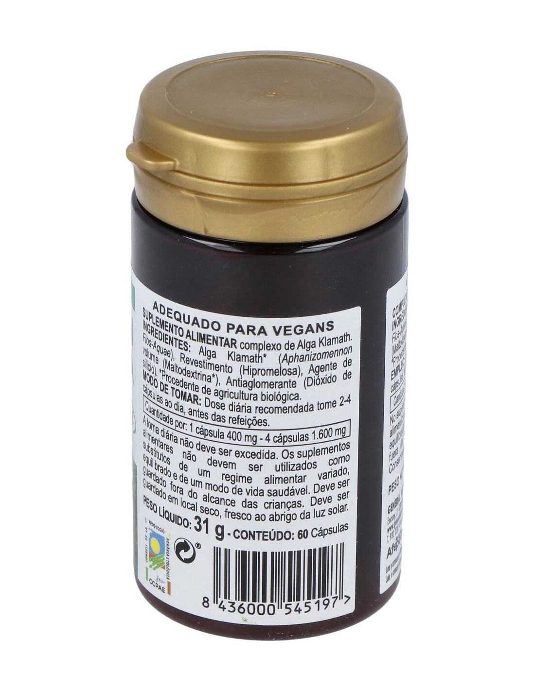 Las cápsulas de Alga Klamath Eco están elaboradas con ingredientes naturales y respetan procesos ecológicos certificados, asegurando un producto limpio y con un perfil nutricional completo. Su formato en cápsulas es práctico para quienes prefieren una suplementación sencilla y sin sabores fuertes.
