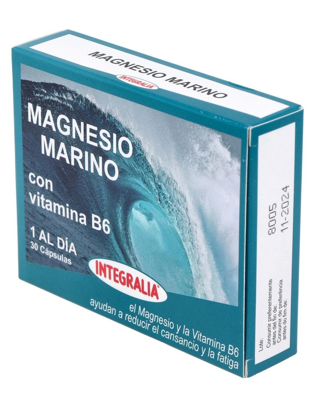 Magnesio Marino Con Vit. B6 30Cap. de Integralia ofrece una combinación práctica y equilibrada para apoyar las necesidades nutricionales diarias relacionadas con estos nutrientes.