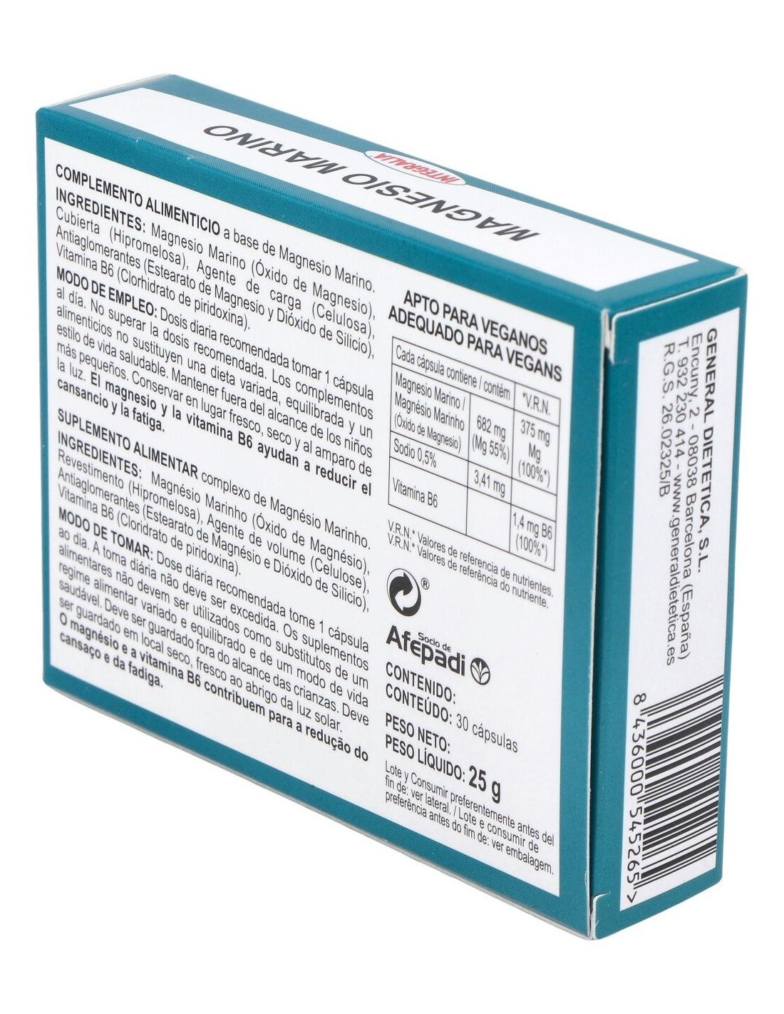 Magnesio Marino Con Vit. B6 30Cap. de Integralia es un suplemento diseñado para personas que buscan complementar su ingesta diaria de magnesio y vitamina B6, contribuyendo a mantener un equilibrio nutricional adecuado. Es adecuado para quienes desean apoyar su bienestar general mediante una fórmula que combina minerales y vitaminas esenciales.
