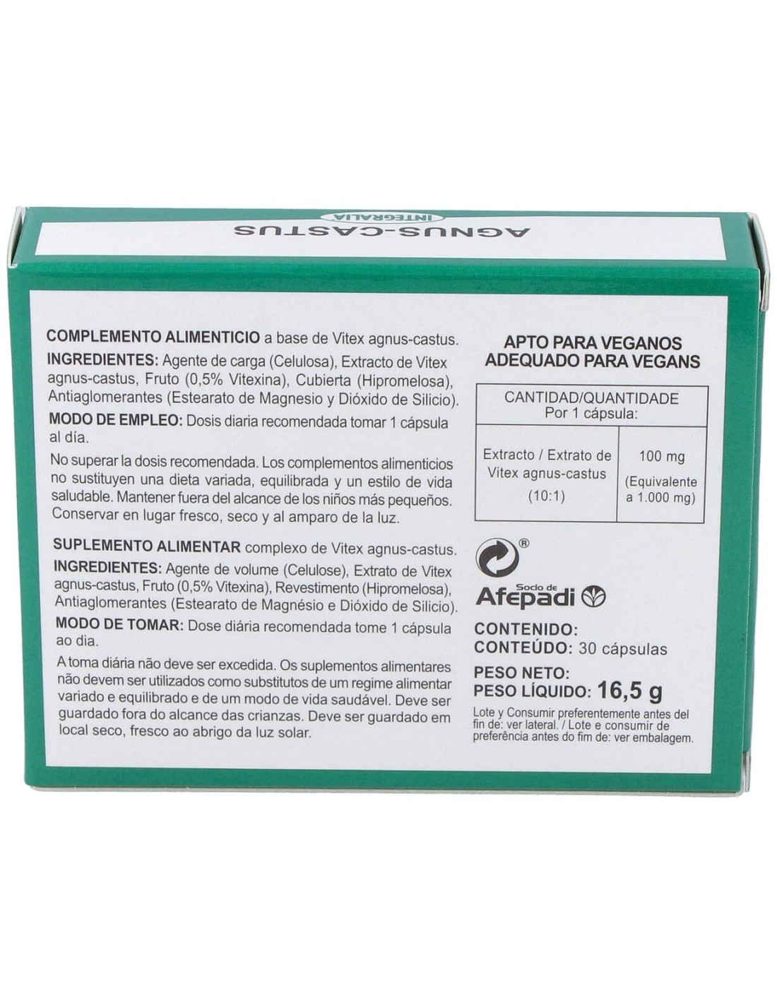 INTEGRALIAEl Vitex Agnus Castus 30Cap. de Integralia es un suplemento natural para mujeres que ayuda a equilibrar las hormonas femeninas mediante extracto estandarizado de agnus castus.