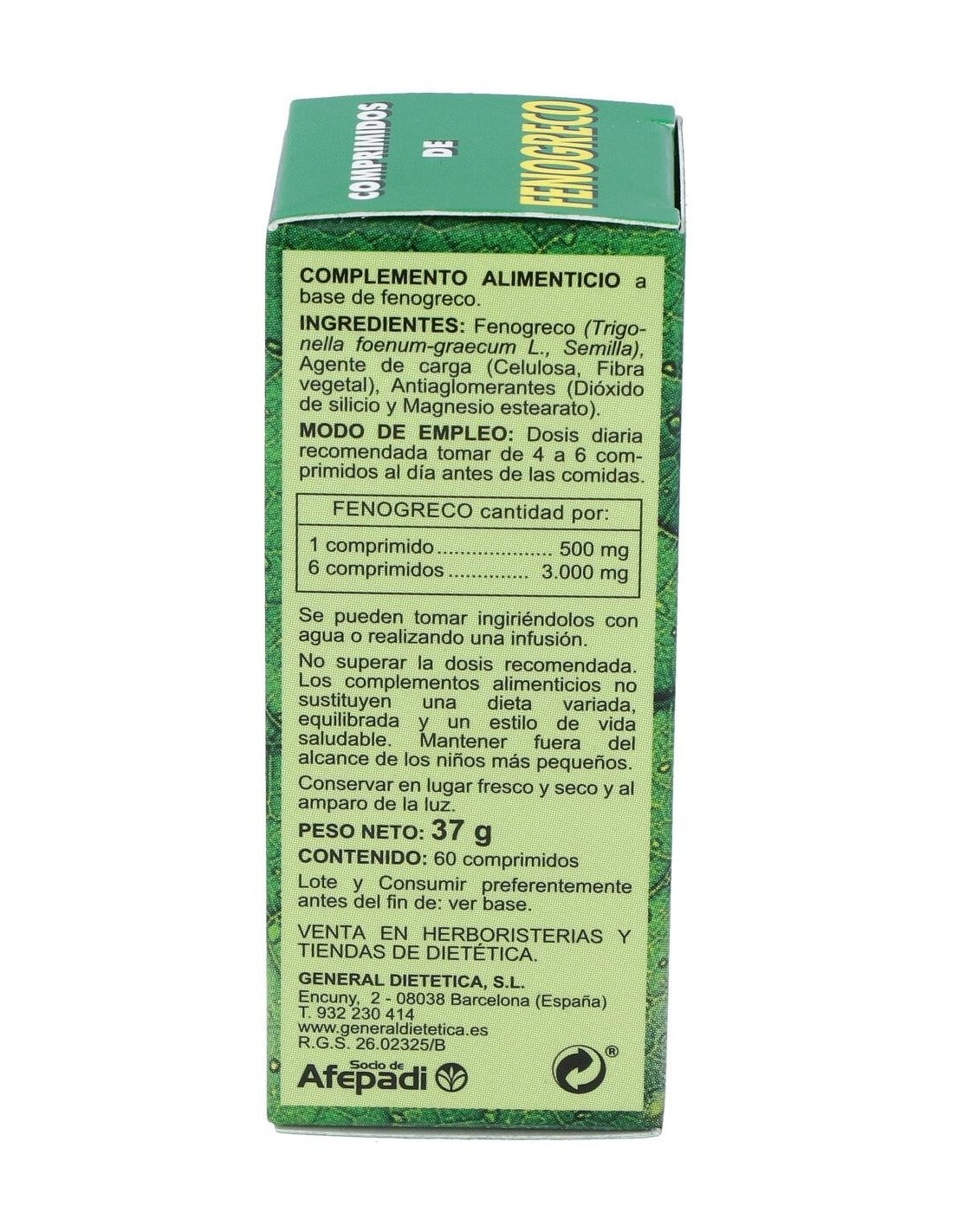 - Cada comprimido contiene 500 mg de fenogreco, facilitando una ingesta controlada y constante.