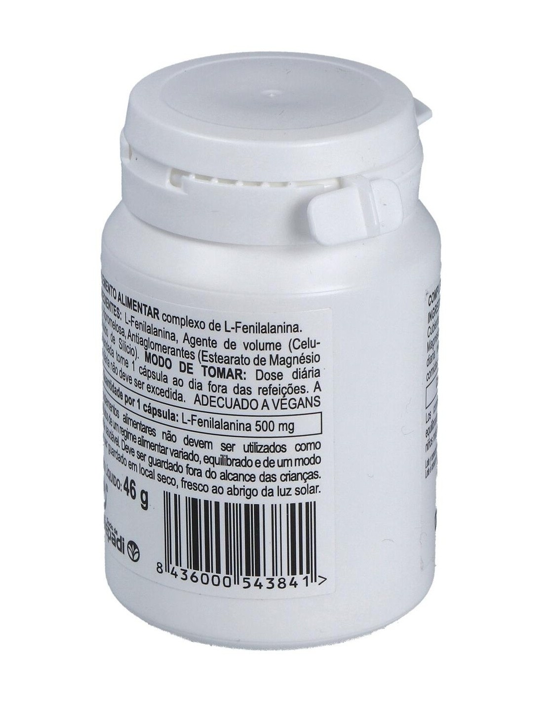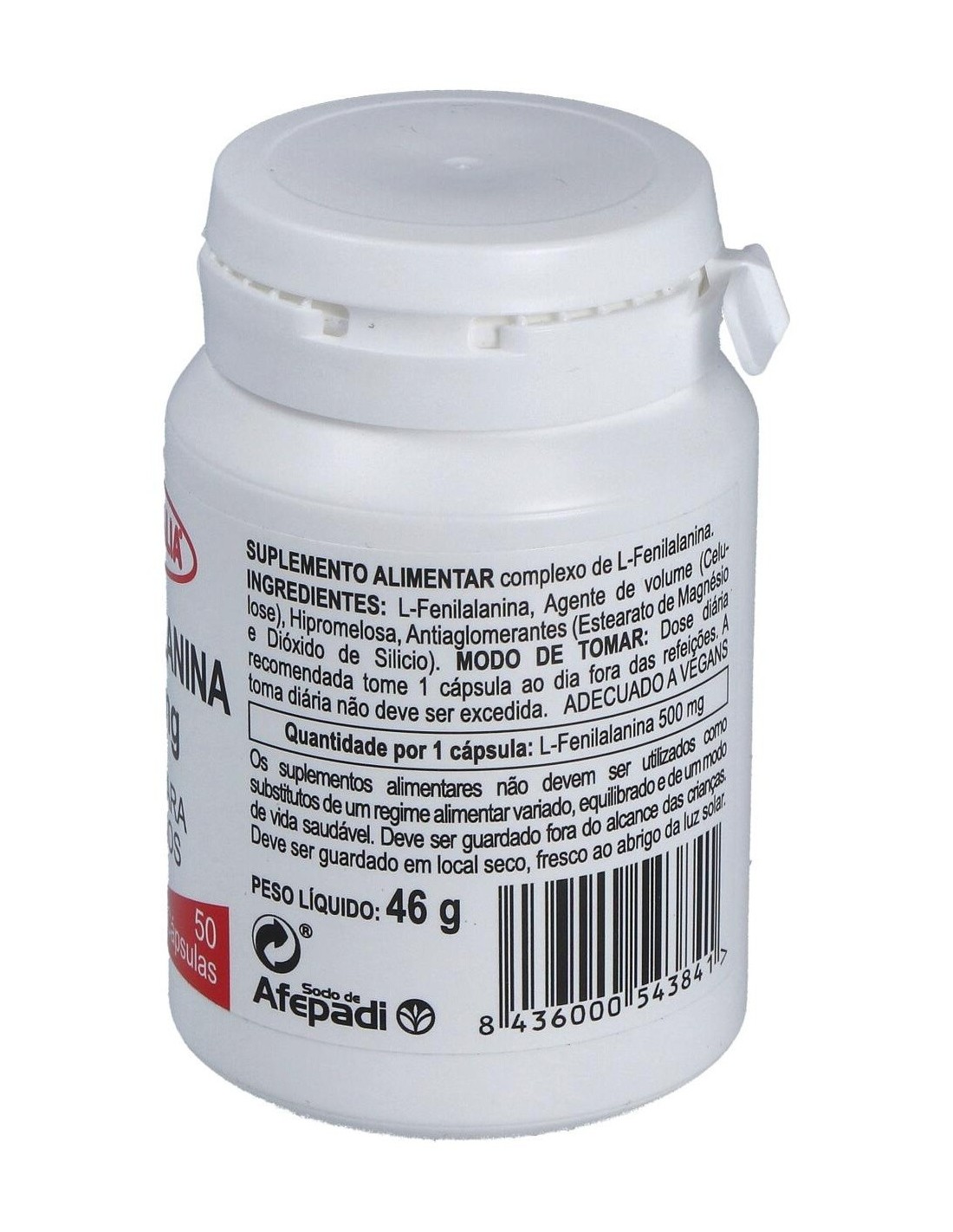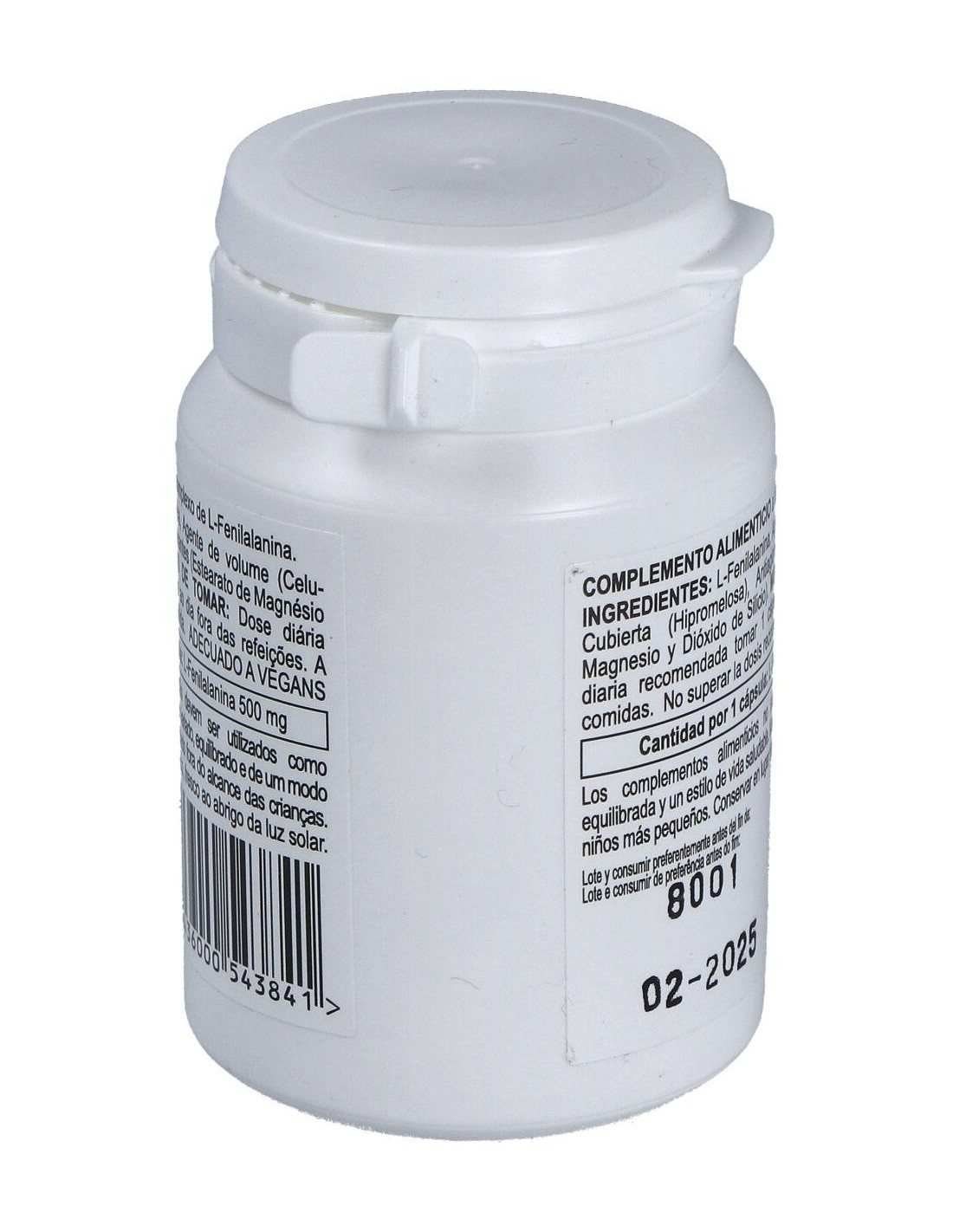 - Cada cápsula contiene L-fenilalanina, un aminoácido esencial que contribuye a la síntesis de proteínas en el organismo.