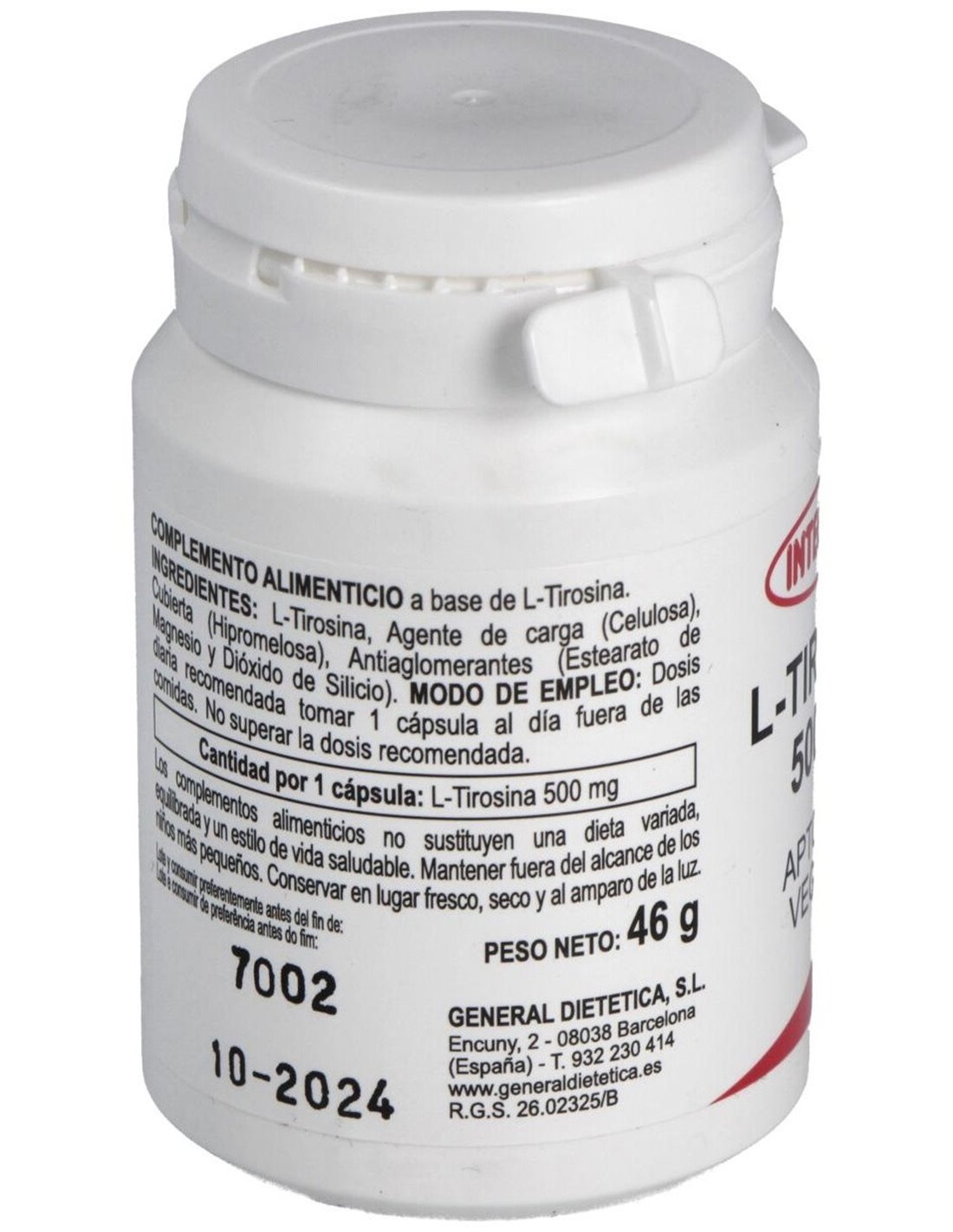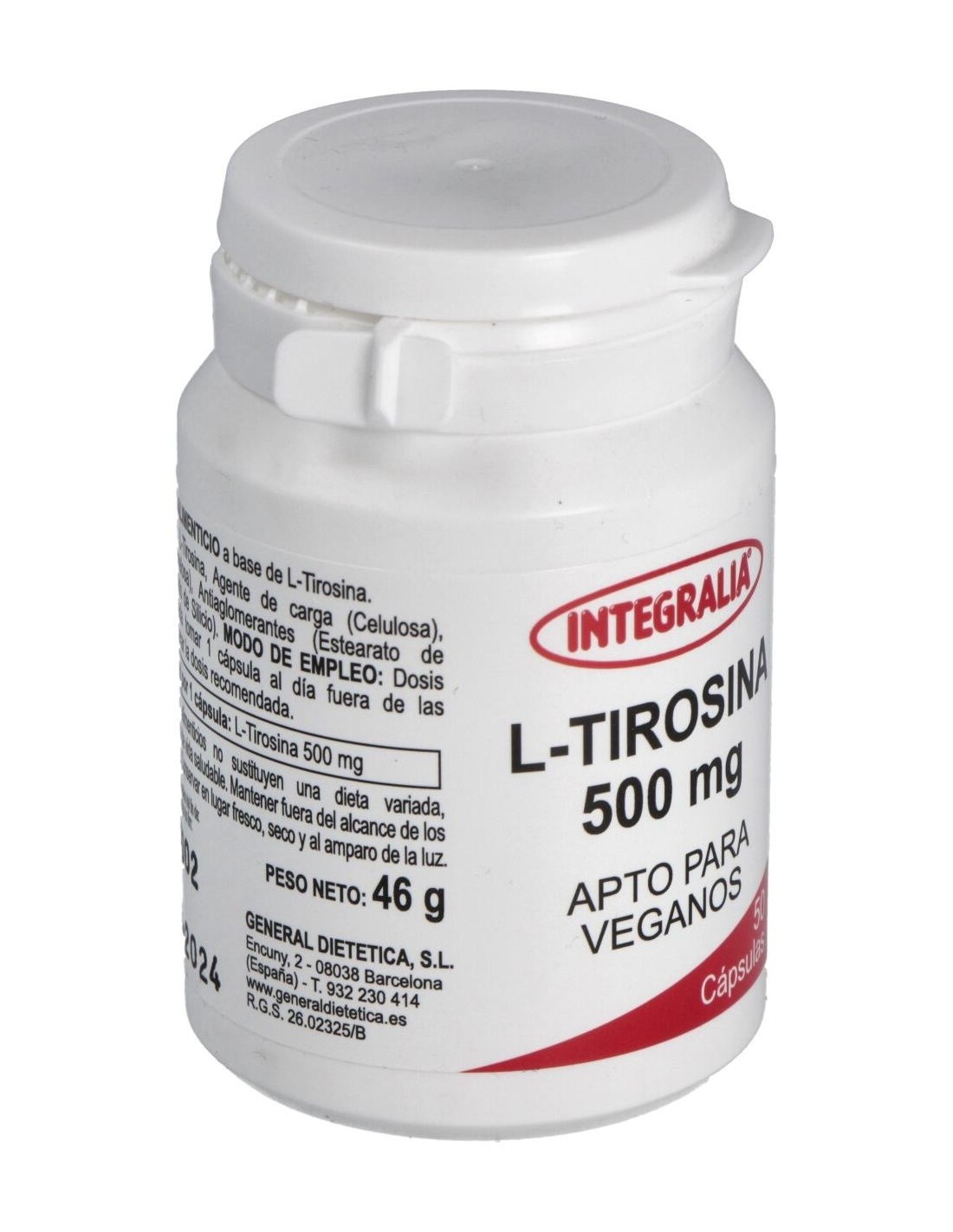 INTEGRALIAL-Tirosina 50Cap. de Integralia es un suplemento nutricional dirigido a personas que buscan apoyar su concentración y rendimiento mental, aportando aminoácidos esenciales para el equilibrio cerebral y la función cognitiva.