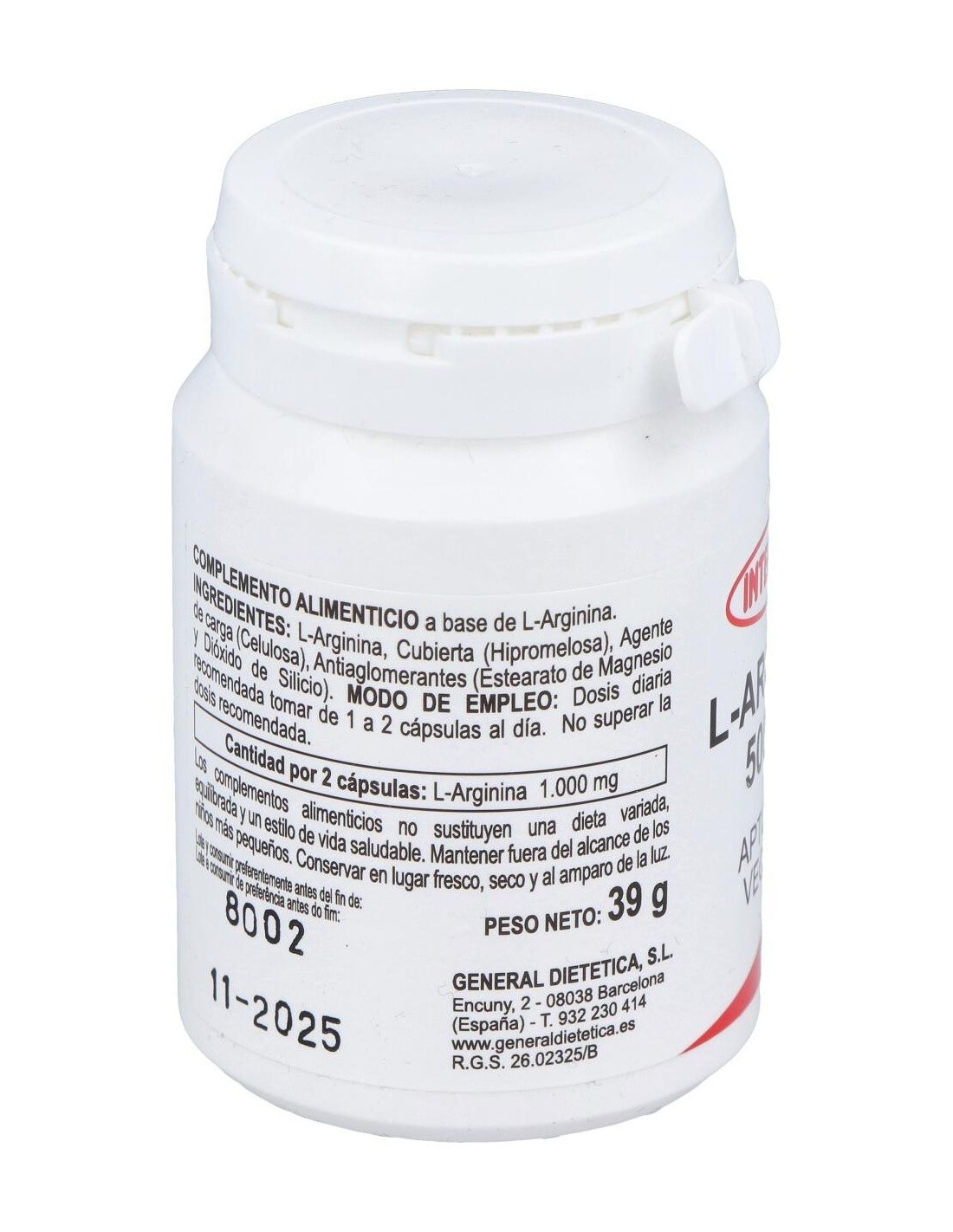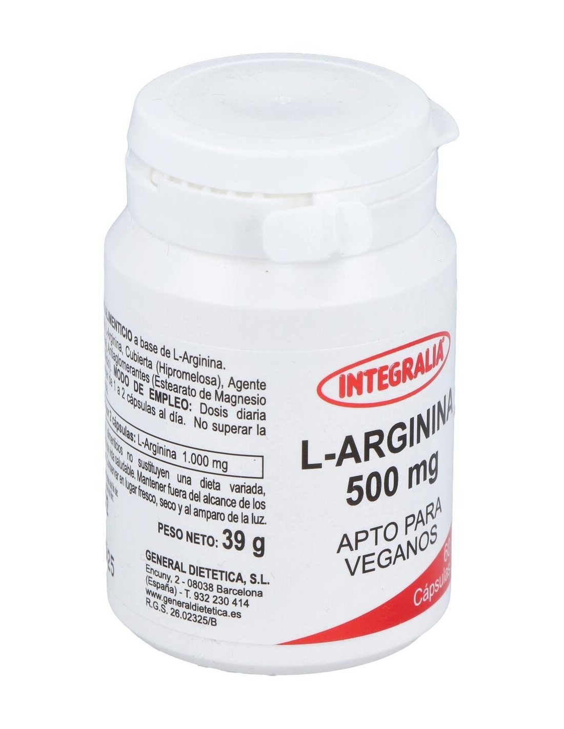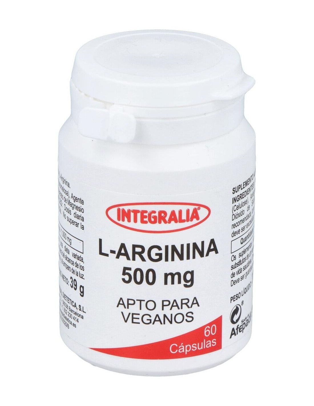 INTEGRALIAL-Arginina 500Mg. 60Cap. de Integralia es un suplemento para adultos que apoya la función vascular y la producción de óxido nítrico, contribuyendo al bienestar general mediante una fórmula de dosis controlada.