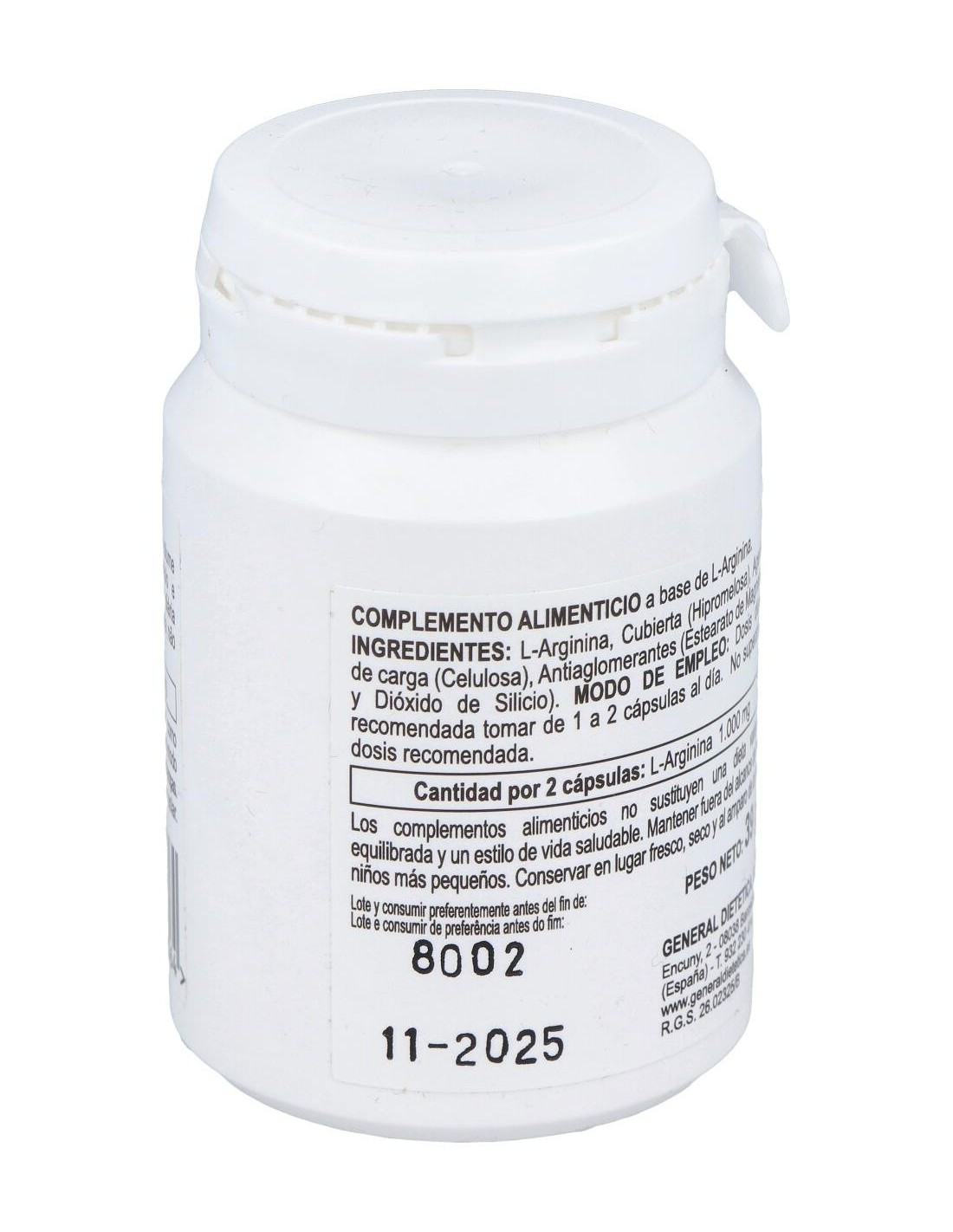 - Cada cápsula contiene 500 mg de L-Arginina, facilitando una dosificación práctica y controlada.