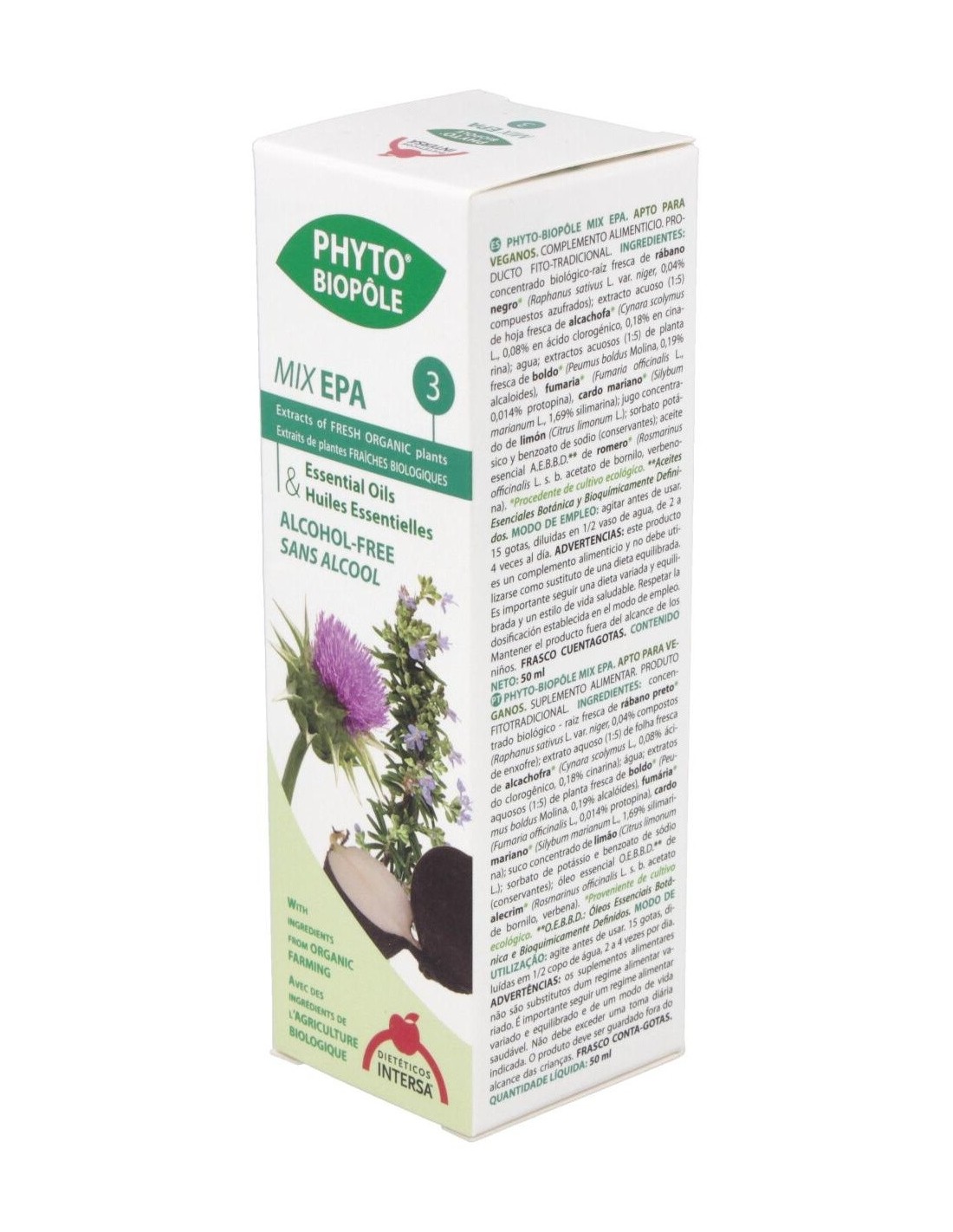 Mix Epa es un producto natural perteneciente a la linea Phyto Biopole, que aporta una excelente combinación de extractos combinados de plantas, yemas y aceites esenciales, indicado como depurador y limpiador hapatico y vesicular biliar. Ingredientes: