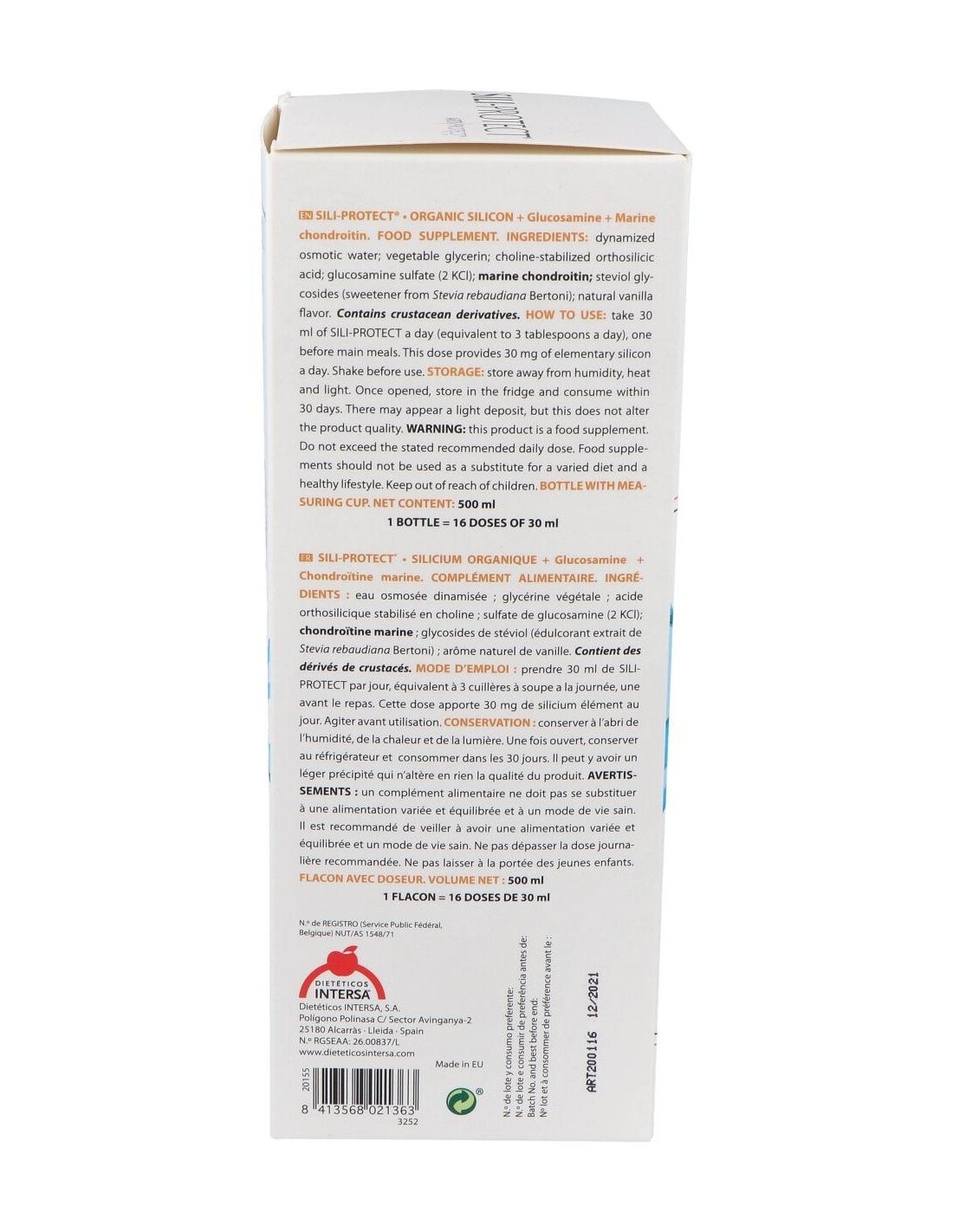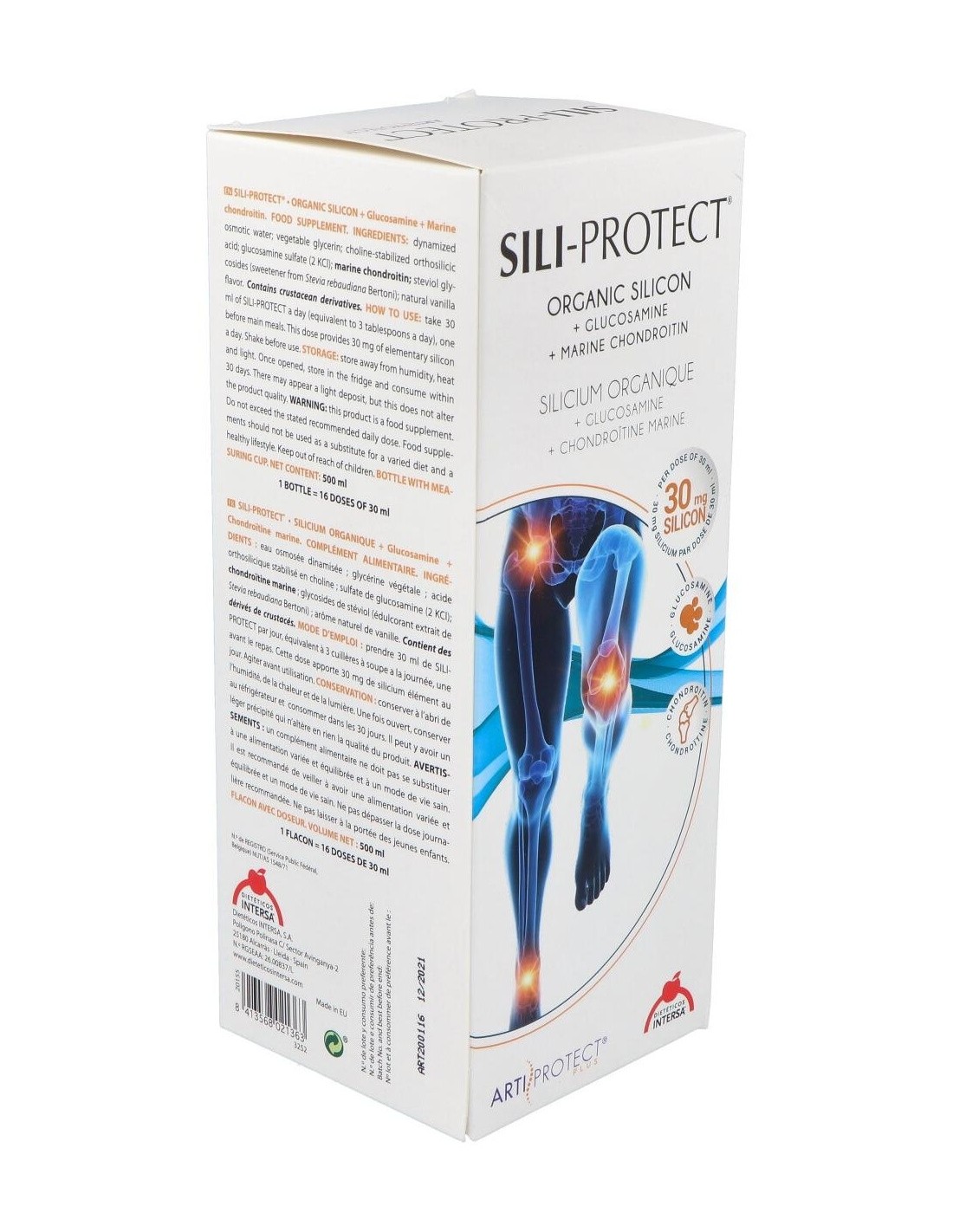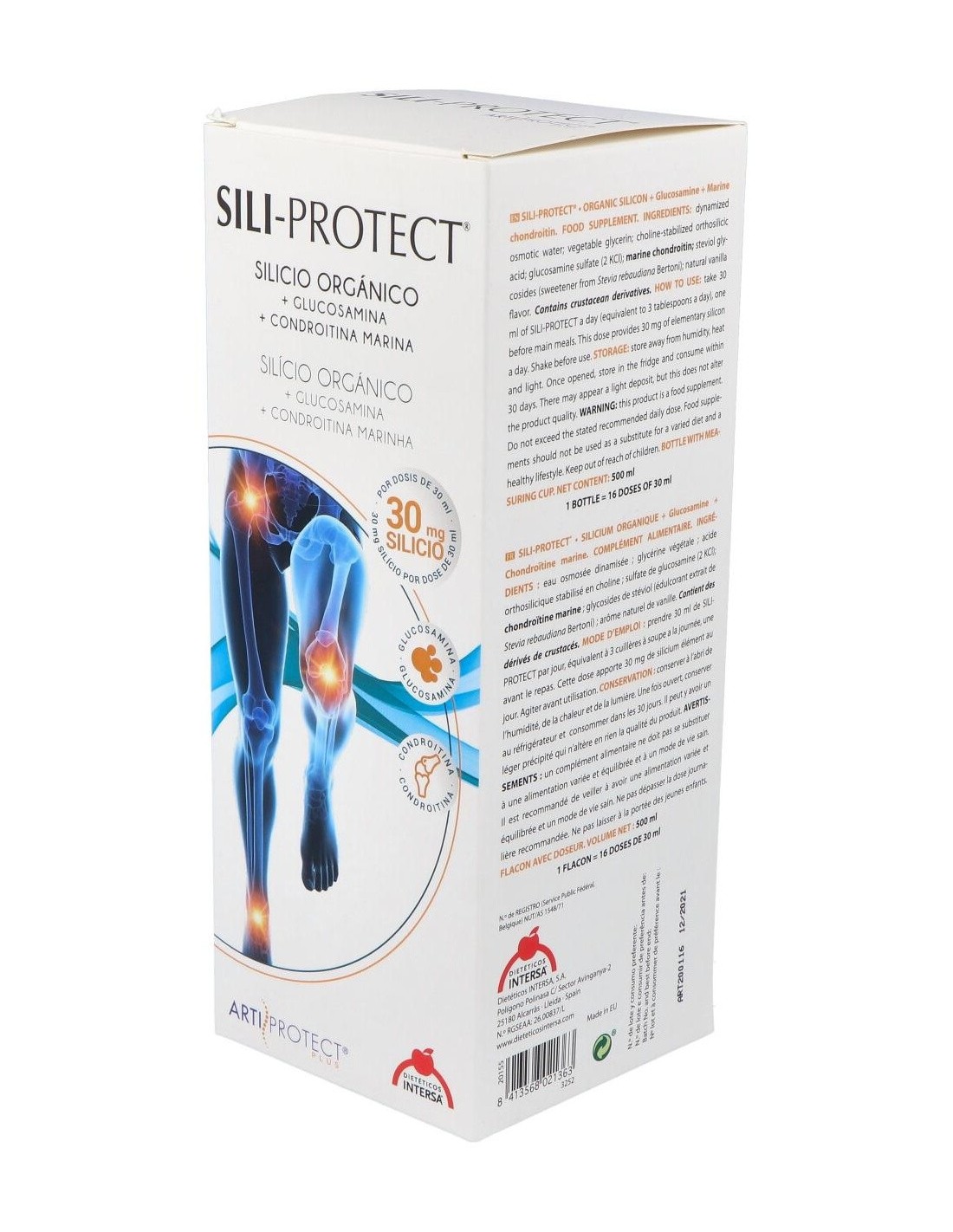 INTERSASili-Protect jarabe es un complemento nutricional que aporta al cartílago articular silicio orgánico, azufre, glucosamina y condroitina marina, actúan