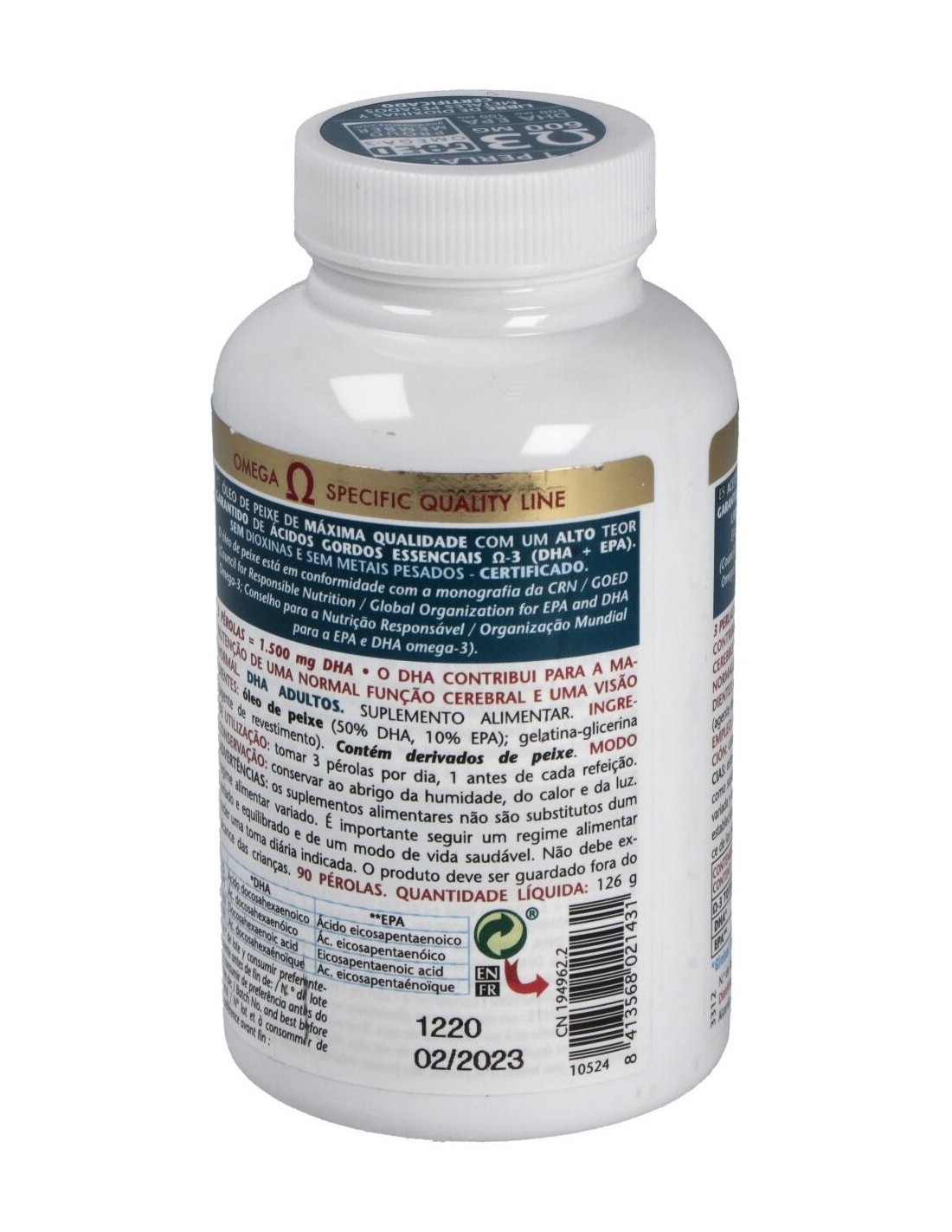 Aceite de pescado salvaje pelágico (500 mg DHA y 100 mg EPA).