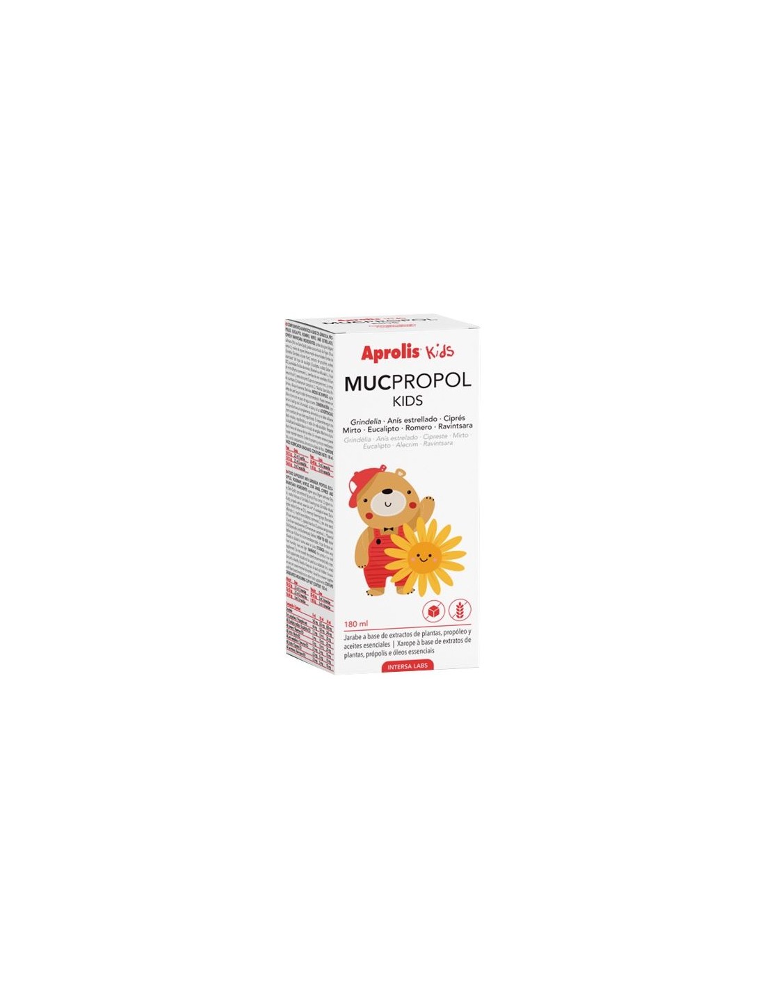 Muc-Propol Kids es un complemento alimenticio formulado con jarabe con- centrado de higos de acción balsámica y expectorante; extracto de sumida- des floridas de Grindelia robusta con propiedades mucolíticas, expectorantes y demulcentes de la mucosa respiratoria que facilitarán la eliminación de la flema y el aclaramiento mucociliar, asociado a las infecciones rinofaríngeas y broncopulmonares.Se combina con aceites esenciales quimiotipados de ravintsara, romero 1,8 cineol, mirto, ciprés y anís estrellado (antimicrobianos, mucolíticos, expectorantes, antivirales y fluidificantes mucociliares).Muc-Propol Kids es un complemento multiacción indicado para combatir la presencia de flema associada a las infecciones del árbol superior durante los resfriados y la bronquitis, así como para potenciar el sistema inmunitario.Indicaciones:
