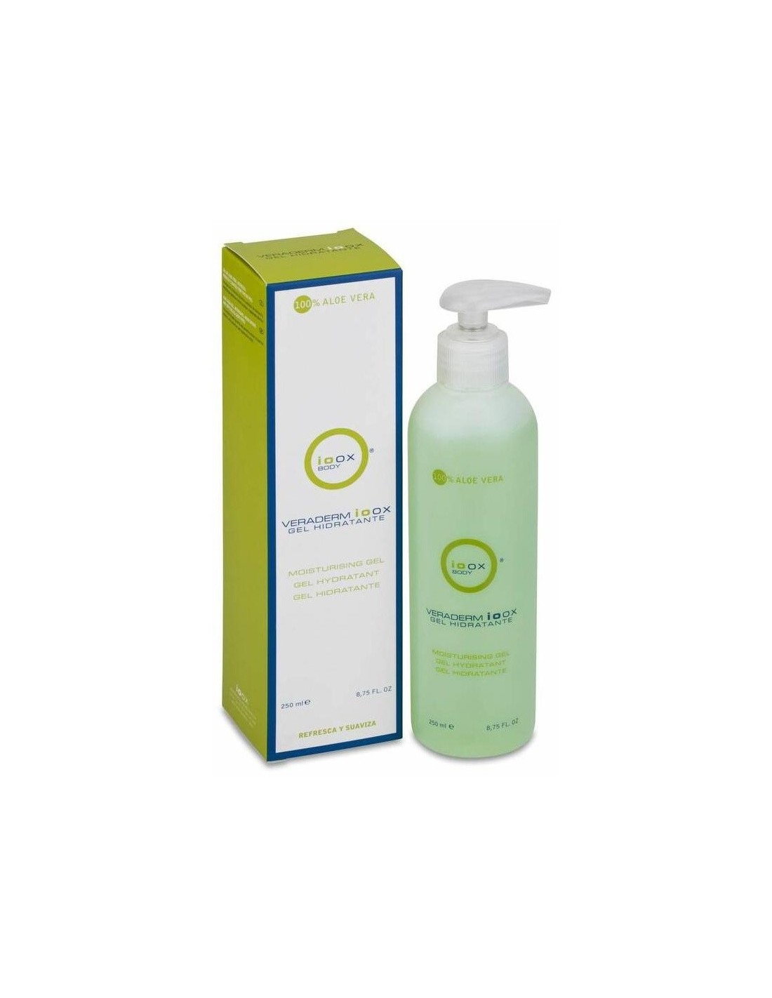 IOOXGel hidratante con aloe vera, planta (Aloe Barbadensis) perteneciente a la familia de las Liliaceas, compuesta por hojas largas y carnosas de cuyo interior se extrae una substancia viscosa en forma de gel. El aloe vera contiene en su composición resina, aloina, enzimas, proteínas, vitaminas (B12, B4, B6, B, A y C) y numerosos oligoelementos (sulfuro,magnesio, germanio, calcio, potasio, hierro, fósforo, sodio...). Con cualidades hidratantes y balsámicas que actúan de manera favorable en las anomalías de la piel y las mucosas. Calmante tras exposición solar. Efecto refrescante.