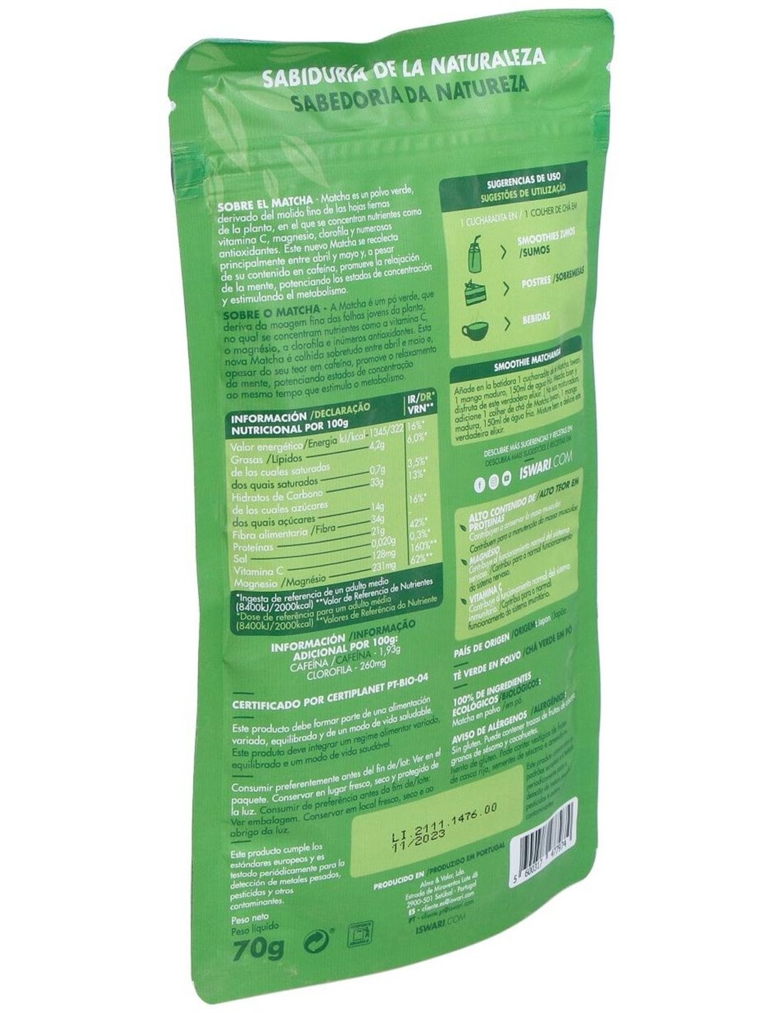 El Matcha es tradicionalmente usado en ceremonias de té y también por los monjes budistas, confiriéndoles un estado de alerta y de tranquilidad que les permite meditar durante largas horas.El Matcha es nutritivo, energizante y relajante. Puede ser usado en bebida fría o caliente.Ingredientes: 100% Matcha.Beneficios:
