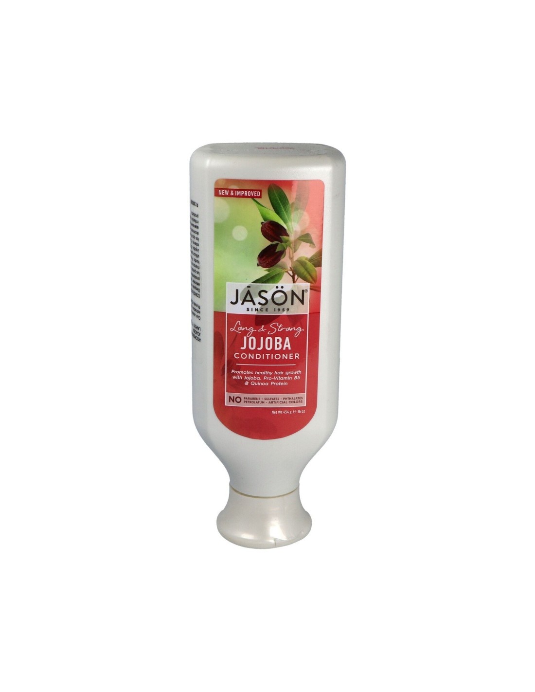 JASONDespués de lavar con champú, extender sobre el cabello, prestando especial atención a las puntas. Dejar actuar al menos un minuto. Aclarar a fondo. Para mejores resultados utilizar junto con el Champú Jojoba Largo y Fuerte.
