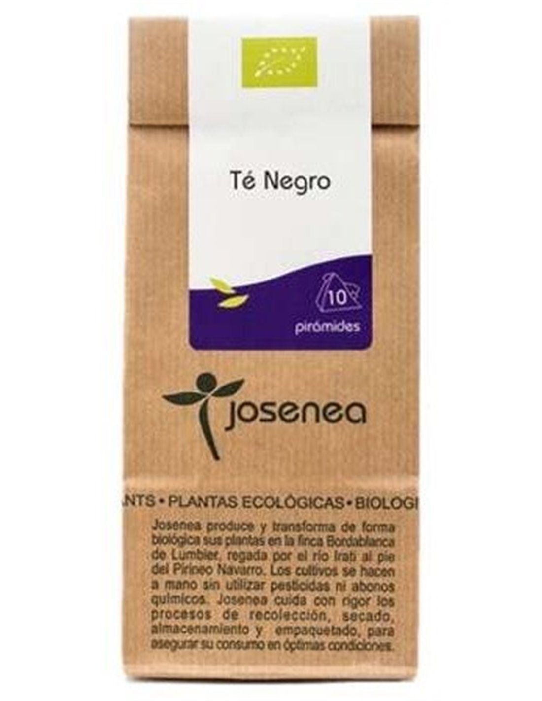JOSENEASobres para infusionar de té negro de origen biológico con certificado verde que garantiza que es un producto que ha sido elaborado íntegramente con productos procedentes de la agricultura ecológica, siendo respetuosos con el medio ambiente. Se trata de un producto apto para una alimentación vegetariana y vegana, y que no contiene gluten.
