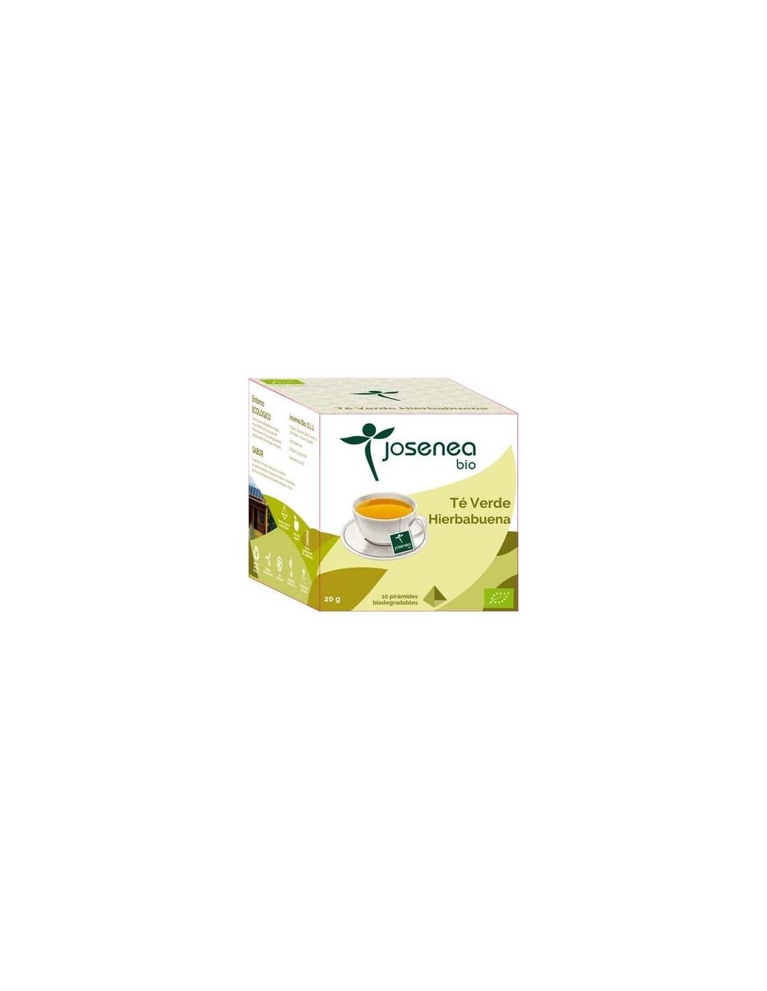 JOSENEAJosenea Té verde con hierbabuena BIO caja 10 pir es una infusión basada en sabores orientales ya que tiene una de las mezclas más aromáticas ya que contiene hierbabuena con esencia energizante y fresca. Modo de empleoCalentar el agua durante 1-3 minutos a 70º-80º, después añadir el producto.