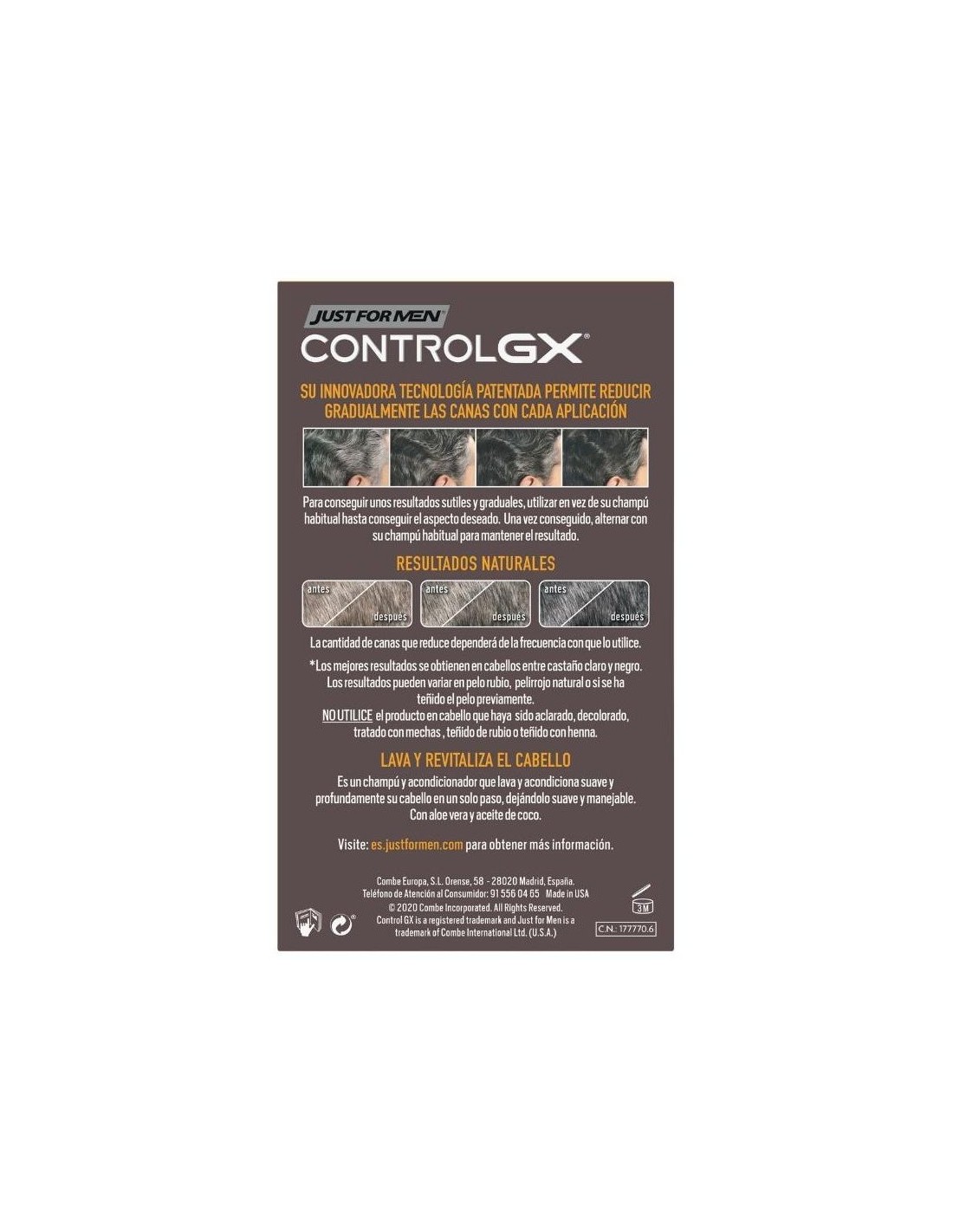 Just For Men Control GX Champú y Acondicionador Reductor de Canas es un producto multifunción: lava el cabello con suavidad a la vez que ayuda a reducir las canas de forma gradual y aporta una apariencia natural. Además de ayudar a recuperar el tono del color del cabello, Just For Men Control GX Champú y Acondicionador Reductor de Canas ayuda a potenciar el volumen y el grosor del cabello. Asimismo, al ser también acondicionador, deja el pelo suave y sedoso.