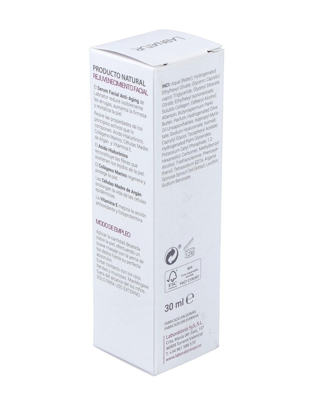LABNATUR BIOSERUM FACIAL acido hialuronico 30ml. LABNATUR de LABORATORIO SYS