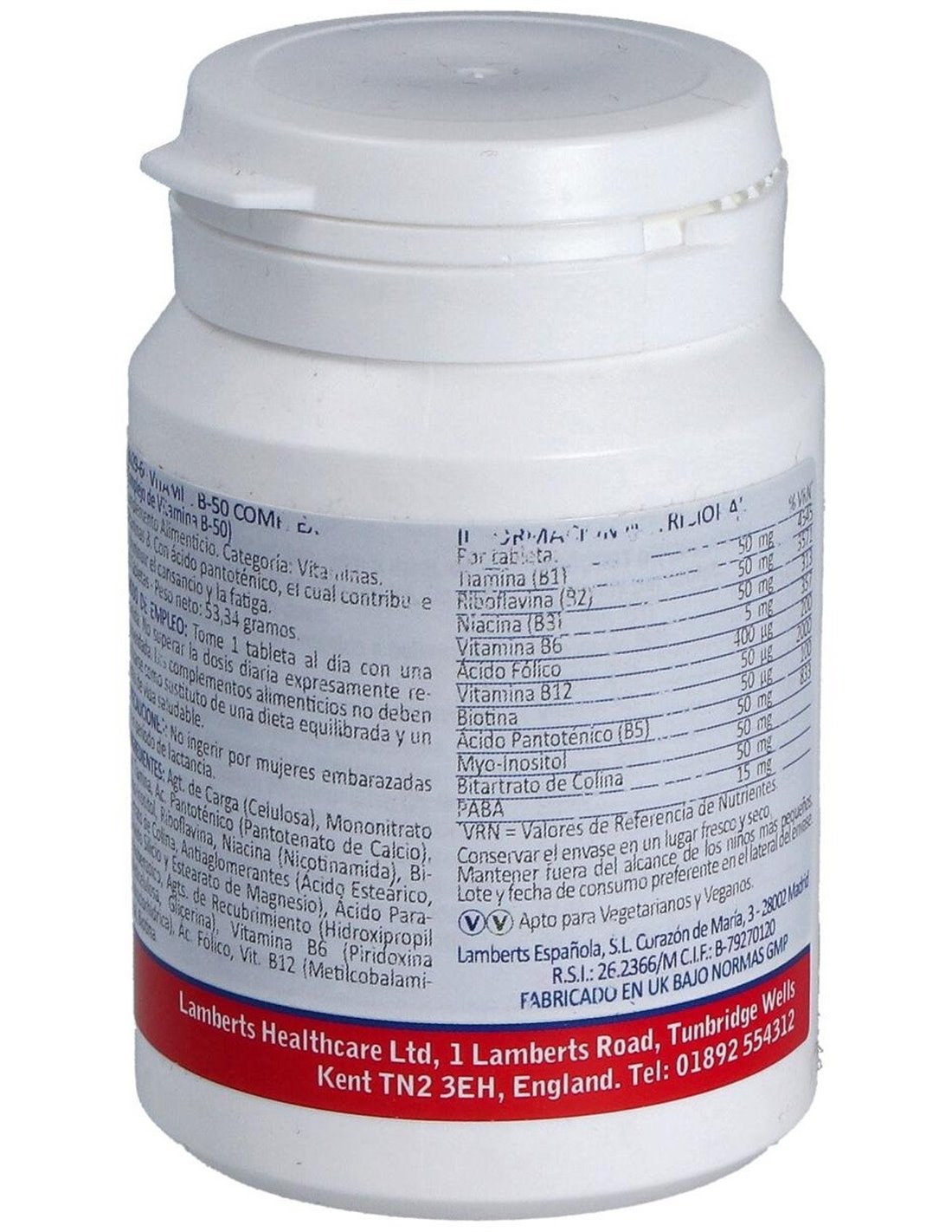 LAMBERTSEl Complejo de Vitaminas B-50 60 Tabs. de Lamberts es un suplemento para adultos que contribuye al metabolismo energético y al funcionamiento normal del sistema nervioso, gracias a su combinación equilibrada de vitaminas del grupo B.