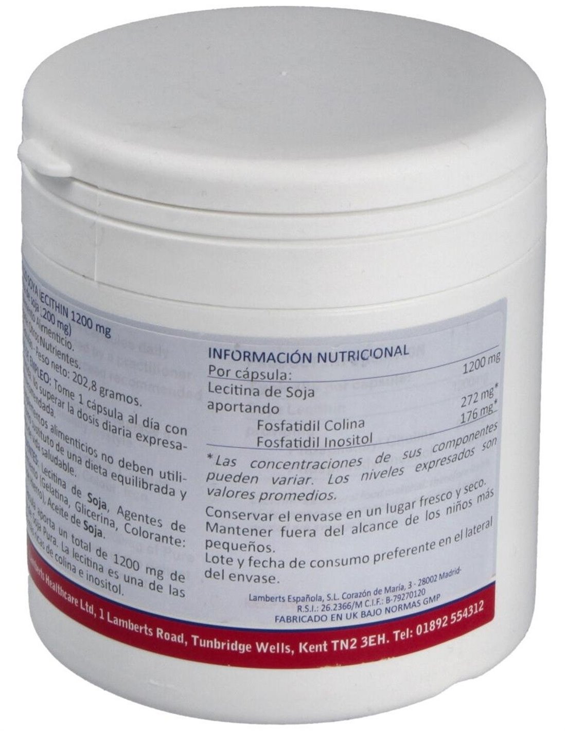 Lecitina de Soja 1200 mg 120 Caps. de Lamberts