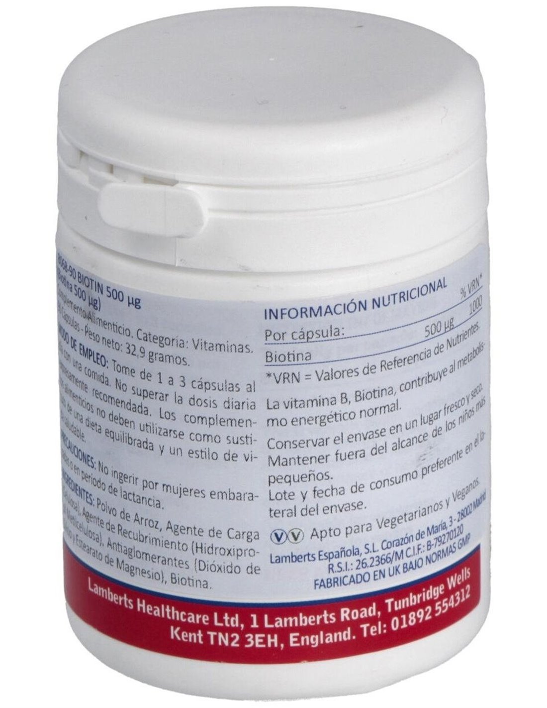 Biotina 500 µg 90 Caps. de Lamberts