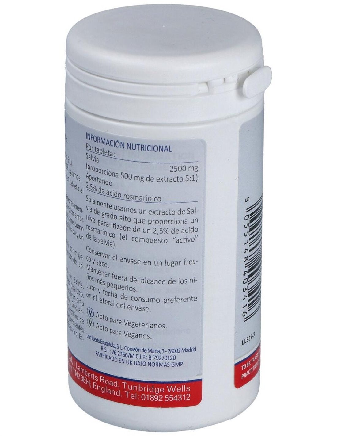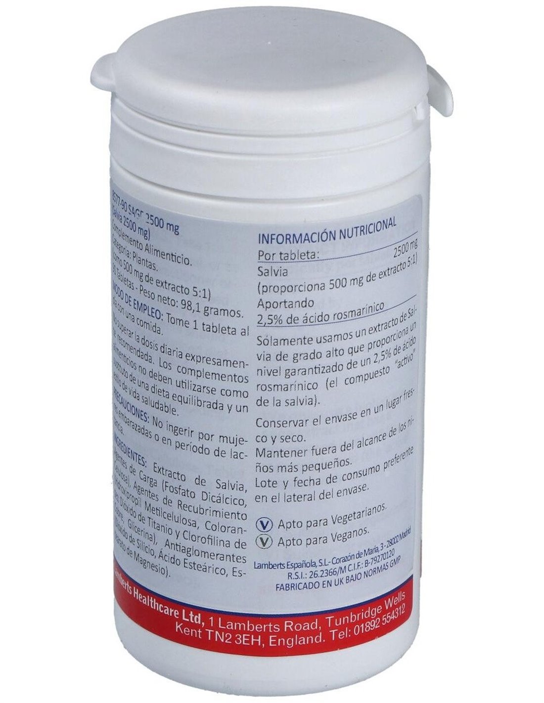 Salvia 2500 mg (2,5% de Ácido rosmarínico) 90 Tabs. de Lamberts