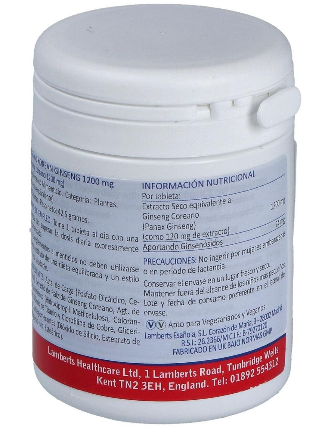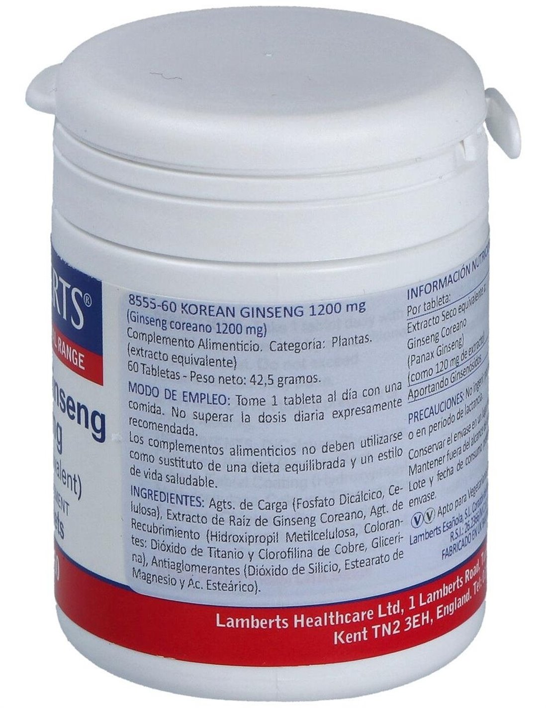 Ginseng Coreano 1200 mg 60 Tabs. de Lamberts