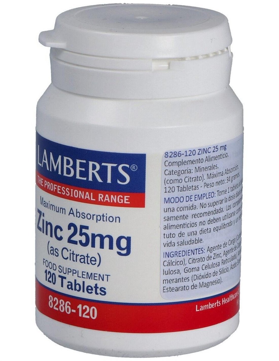 Zinc 25 mg (Como citrato) 120 Tabs. de Lamberts