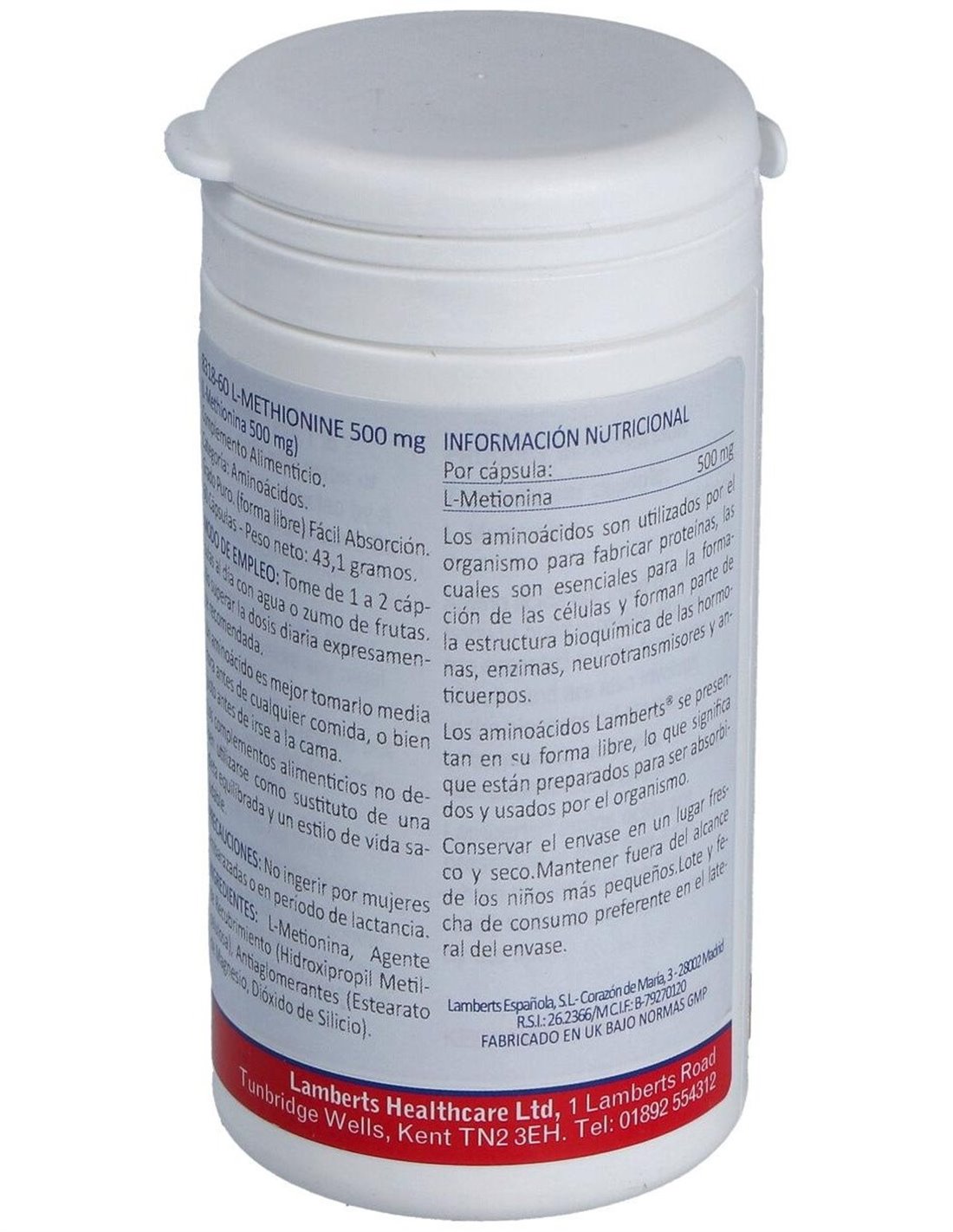 L-Metionina 500 mg 60 Caps. de Lamberts