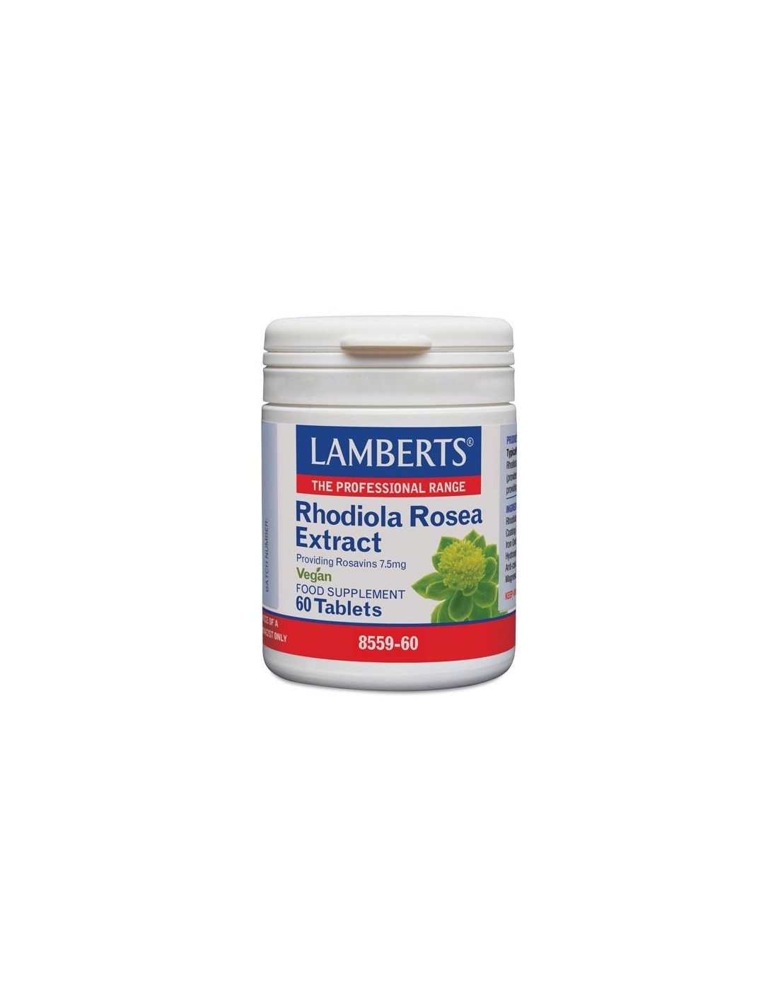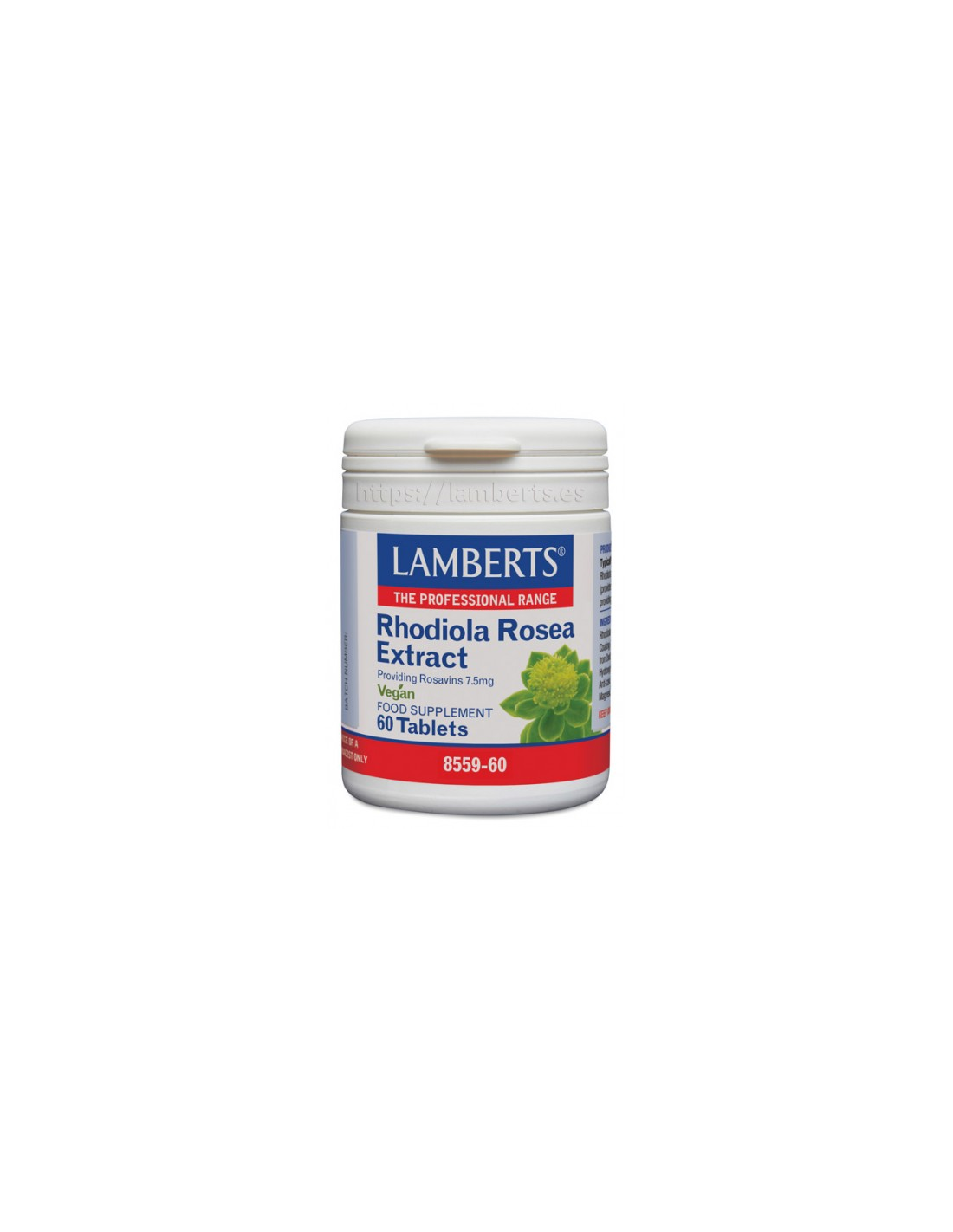 La Rhodiola Rosea es una de las 50 especies distintas de Rhodiola. Esta especie goza de un amplio empleo y reconocimiento, con un largo uso tradicional durante siglos. Rhodiola Rosea contiene una gran variedad de compuestos potencialmente activos, siendo los más conocidos las rosavinas. La Rhodiola Rosea de LAMBERTS® aporta un extracto de alta potencia, equivalente a 3125 mg de planta y con un nivel garantizado de 7,5 mg de rosavinas por tableta. Esta hierba se está haciendo muy popular de forma rápida entre los consumidores de todo el mundo, aunque existen diferencias muy importantes respecto a la calidad y pureza de las materias primas disponibles. LAMBERTS® exige rigurosos ensayos de calidad para poder asegurar la potencia y la pureza del extracto utilizado en este producto. La materia prima que utilizamos se prueba específicamente para determinar su nivel de rosavin y, de forma tranquilizadora, toda la materia prima utilizada en nuestros extractos herbales son filtrados para garantizar que ninguno haya sido irradiado. Composición por tableta:3.125 mg de extracto 4.5:1 de rhodiola rosea (como 250 mg de un extracto 12,5:1)(aporta 7,5 mg de rosavinas). Ingredientes:Agentes de Carga (Carbonato Cálcico y Celulosa), Extracto de Raíz de Rhodiola Rosea, Agentes de Recubrimiento (Carbonato Cálcico, Isomalt, Hidroxipropilmetilcelulosa) Antiaglomerantes (Dioxido de Silicio, Ácido Esteárico y Estearato de MagnesiModo de empleo:Tomar 1 comprimido al día con una comida. Presentación:Envase de 60 tabletas.Recomendaciones y advertencias:No contiene: Trigo, gluten, cebada, soja, huevos, leche y productos lácteos, lactosa, nueces, sulfitos, apio, pescado, mariscos y levadura. Apto para veganos y vegetarianos.