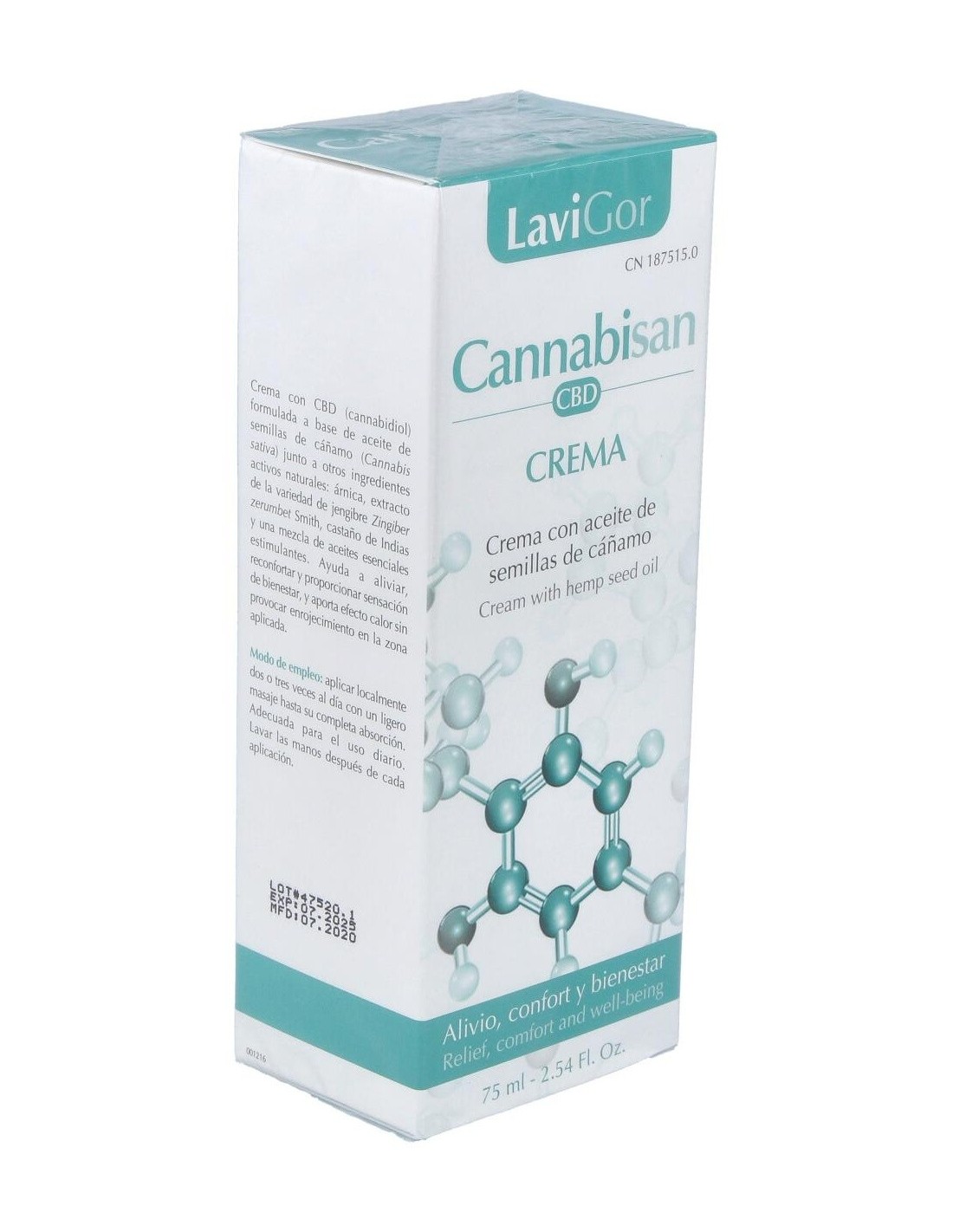 LAVIGORLa Cannabisan Crema 75Ml. de Lavigor es una crema tópica para personas que buscan alivio en la piel, formulada con extractos de cannabis que contribuyen a una sensación de bienestar local.