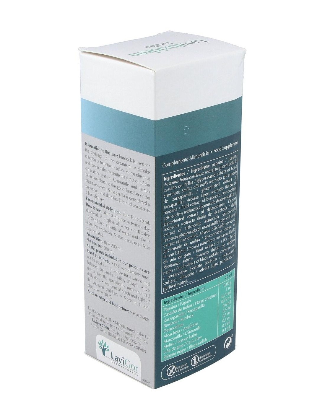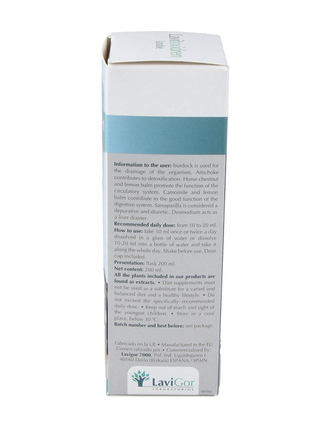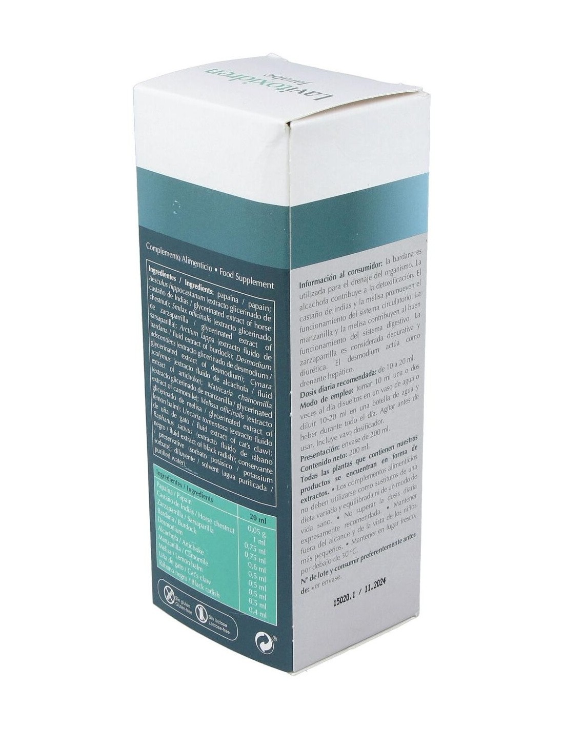 Suplemento a base de ingredientes vegetales y papaína que contribuyen al normal funcionamiento de la acción drenante, detoxificante y circulatoria del organismo. Incluye vaso dosificador.