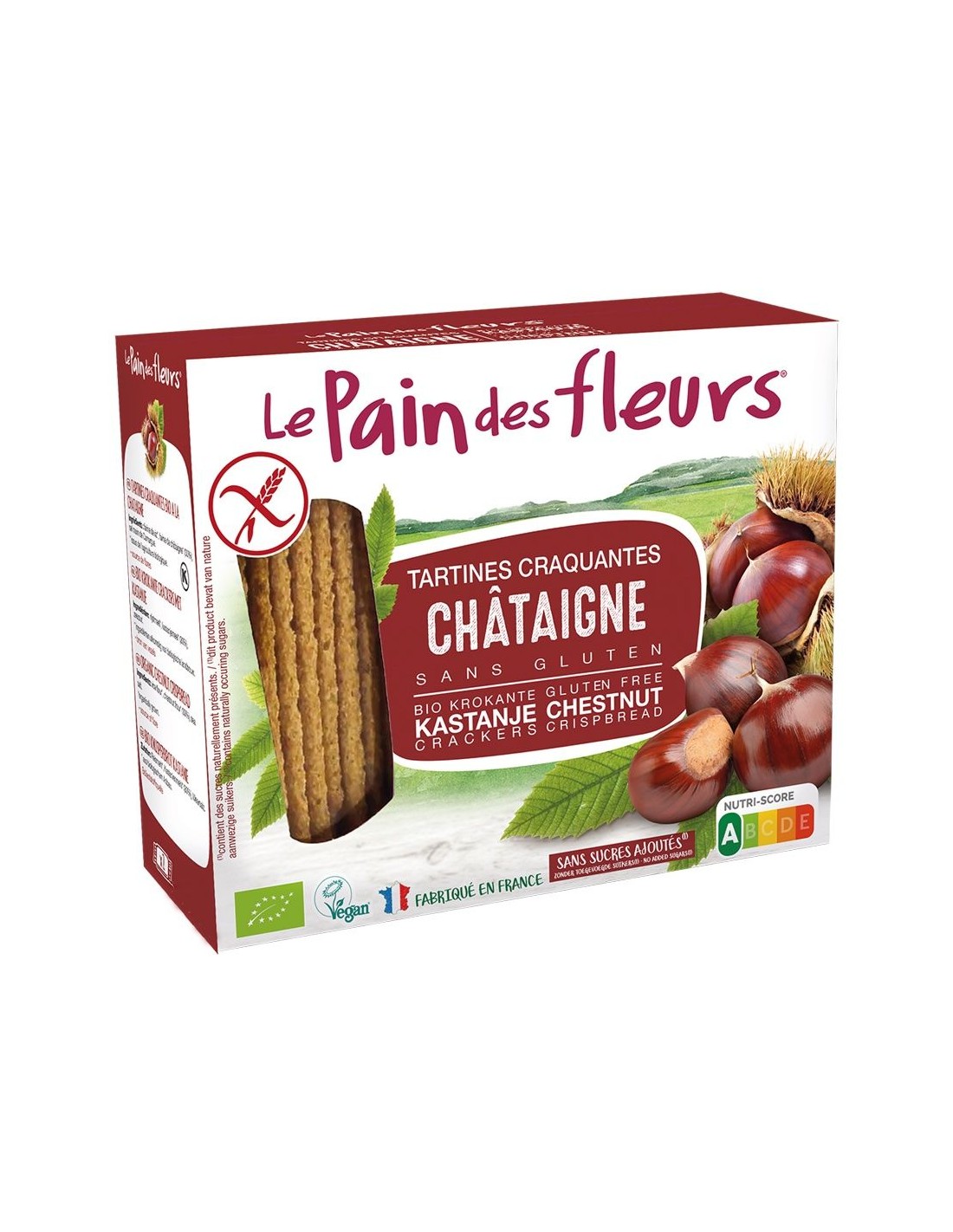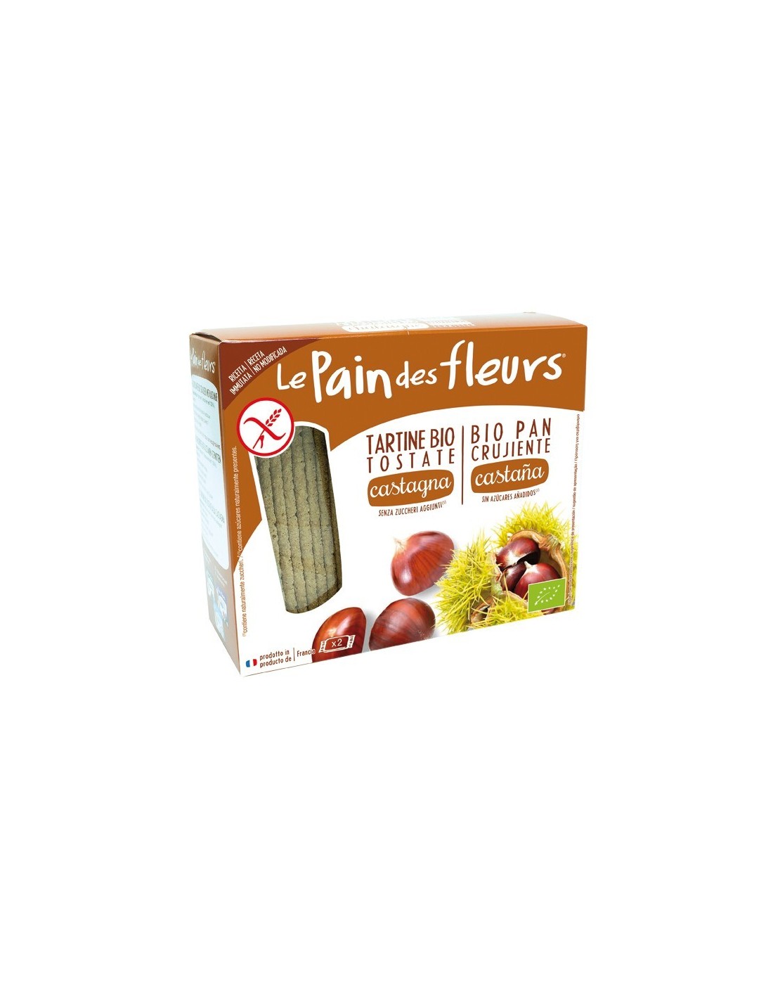 LE PAIN DES FLEURSIngredientes:Harina de arroz*, harina de castaña* (30%), sal marina. (*) Ingredientes procedentes de la agricultura ecológica.Valor nutricional por 10