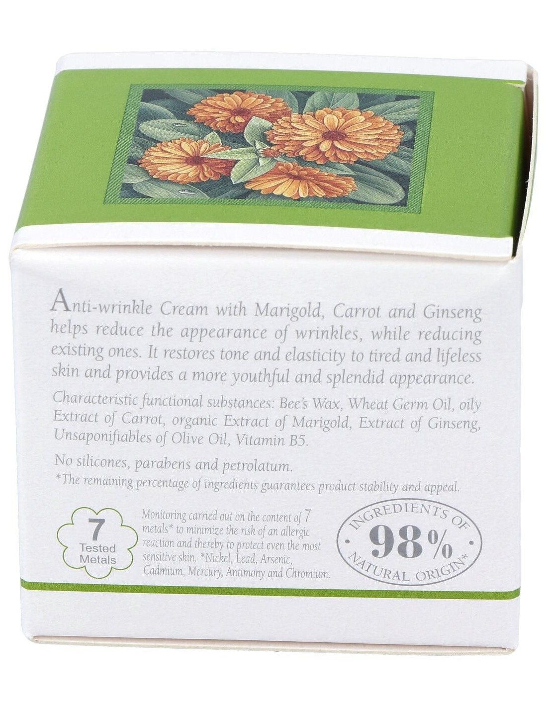 Su formulación ayuda a prevenir la aparición de arrugas, reduciendo las existentes. Devuelve el tono y la elasticidad a la piel cansada y relajada y garantiza un aspecto más joven y radiante. Sin siliconas, parabenos ni vaselina.