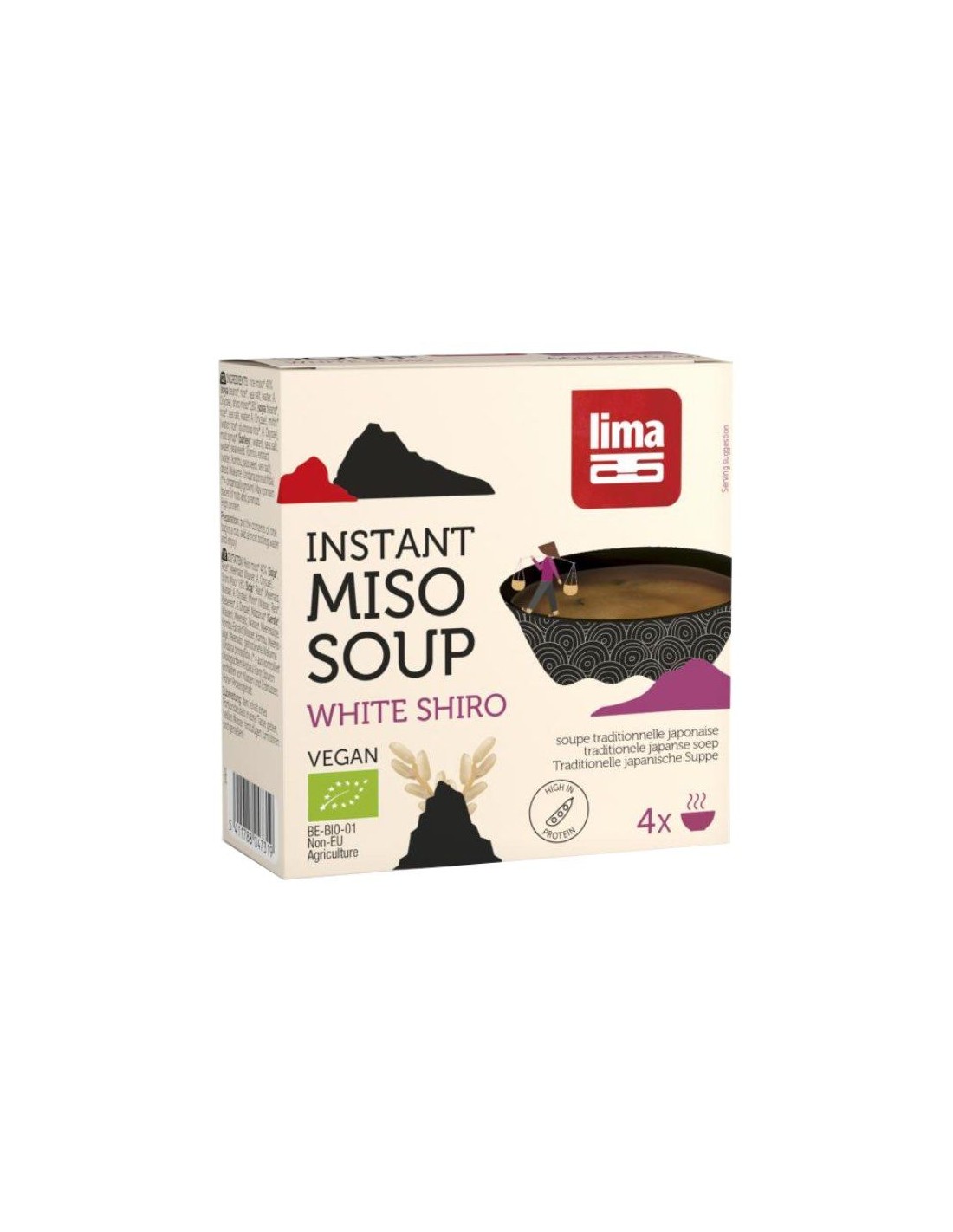 LIMAIngredientes:Miso de arroz* 40% (soja*, arroz*, sal marina, agua, A. Oryzae), shiro miso* 18% (soja*, arroz*, agua, sal marina, A. Oryzae), mirin* (ag