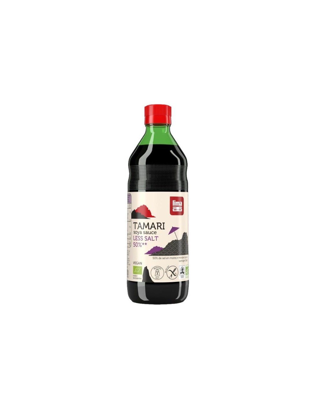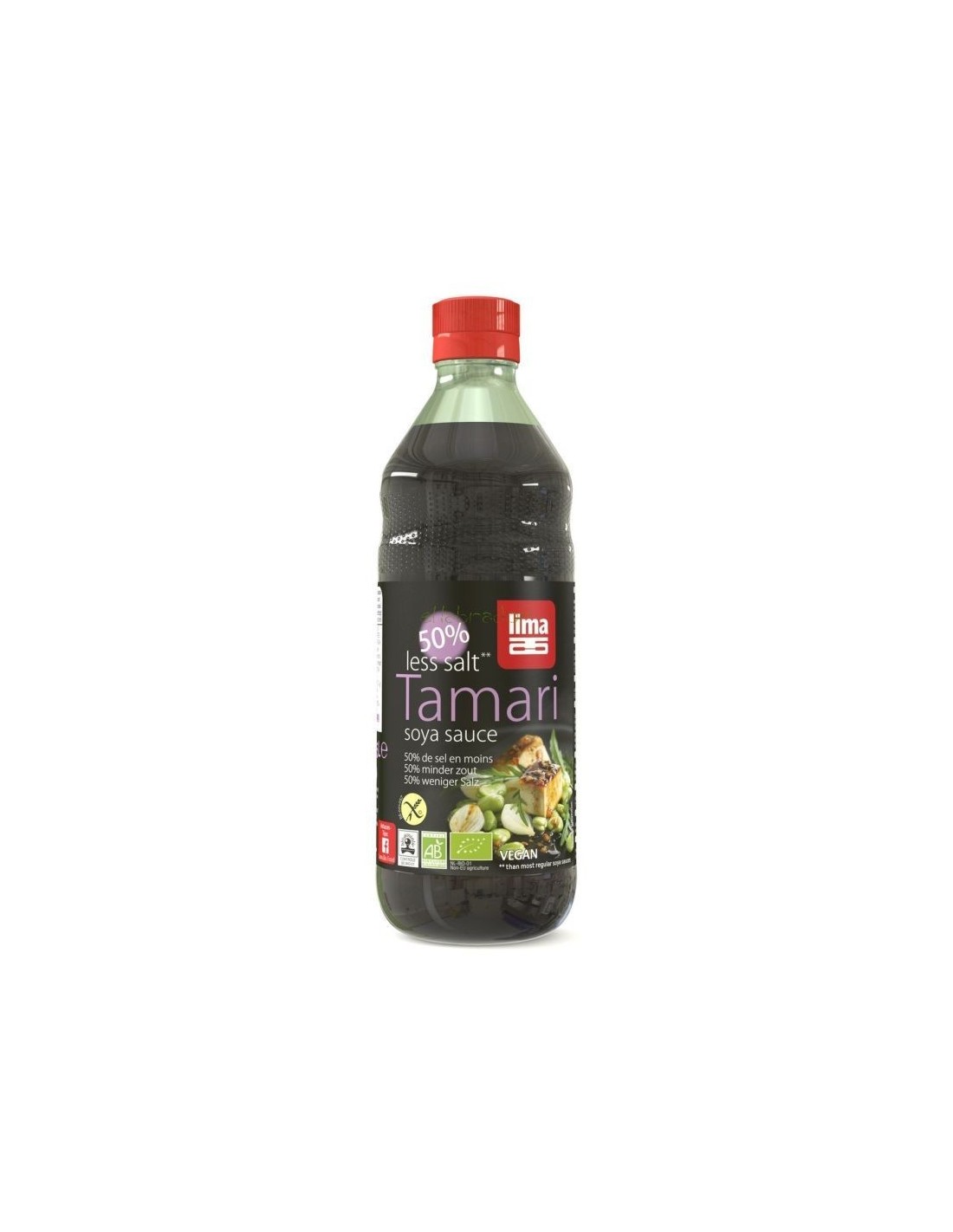LIMAIngredientes:Agua, soja*, sal marina 6,7%, alcohol*, corrector de acidez: ácido láctico, vinagre de arroz*, A. oryzae. (*) Cultivado orgánicamente.Val