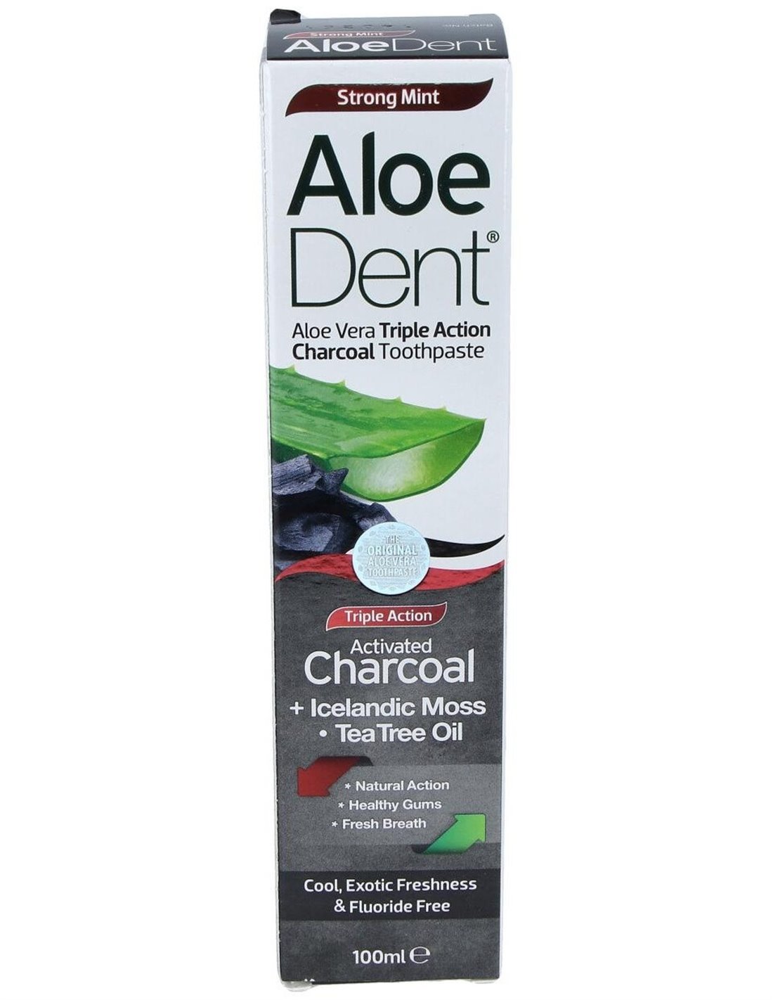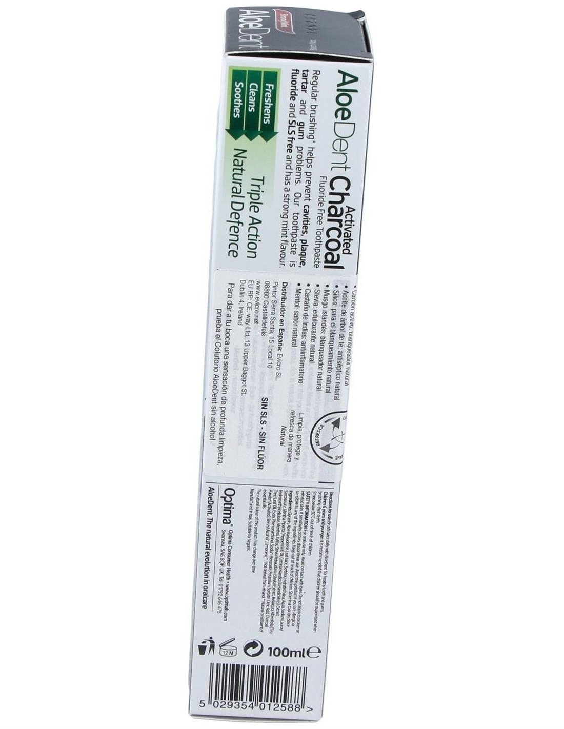 El Dentífrico Aloe Dent Carbón Activo de Optima es un producto con una gran cantidad de ingredientes bioactivos y orgánicos que incluyen aloe vera calmante, carbón activado, musgo islandés y aceite de árbol de té, que ayudan a mantener los dientes sanos. Puede estar seguro de que obtiene todos los beneficios de una pasta de dientes sin flúor, rica en ingredientes naturales que realmente funcionan, cada vez que se cepilla.Ingredientes (INCI):Glycerin, Aloe Barbadensis Leaf Juice, Sorbitol, Hydrated Silica, Aqua, Sodium Lauroyl Sarcosinate, Mentha Piperita (Peppermint) Oil, Cetraria Islandica (Icelandic Moss) Extract, Hydroxyethylcellulose, Menthol, Xylitol, Stevia Rebaudiana (Stevia) Extract, Melaleuca Alternifolia (Tea Tree) Leaf Oil, Escin (Horse Chestnut), Phenoxyethanol, Sodium Benzoate, Potassium Sorbate, Citric Acid, Charcoal Powder (Activated), Benzyl Alcohol*, Limonene**. (*) No derivado del etanol. (**) Constituyente natural de los aceites esenciales.Modo de empleo:Cepillar los dientes meticulosamente, preferiblemente después de cada comida, o al menos dos veces al día, o según indique el dentista. A continuación enjuagar adecuadamente.Presentación:Envase de 100 ml.Recomendaciones y advertencias:No contiene flúor ni SLS.