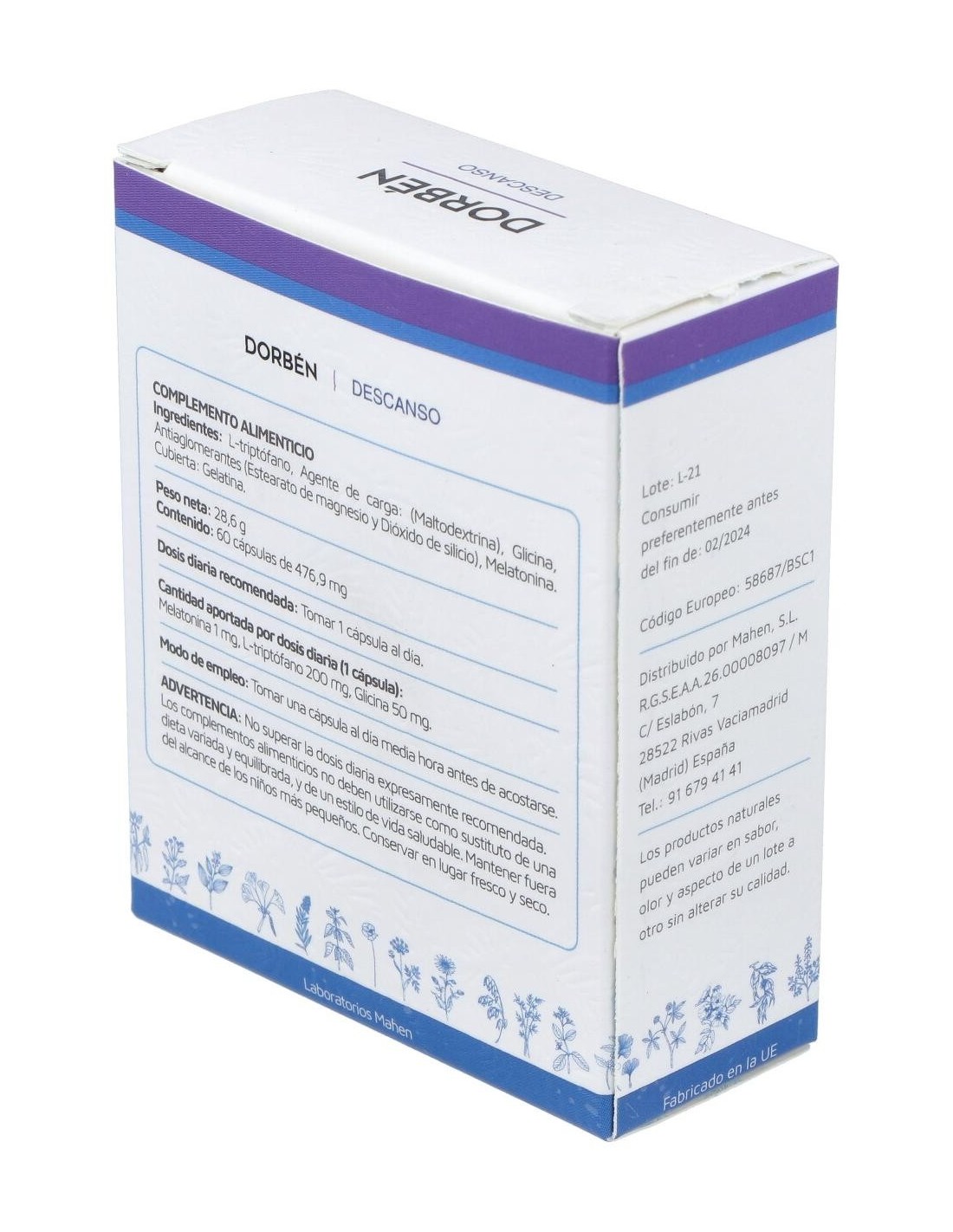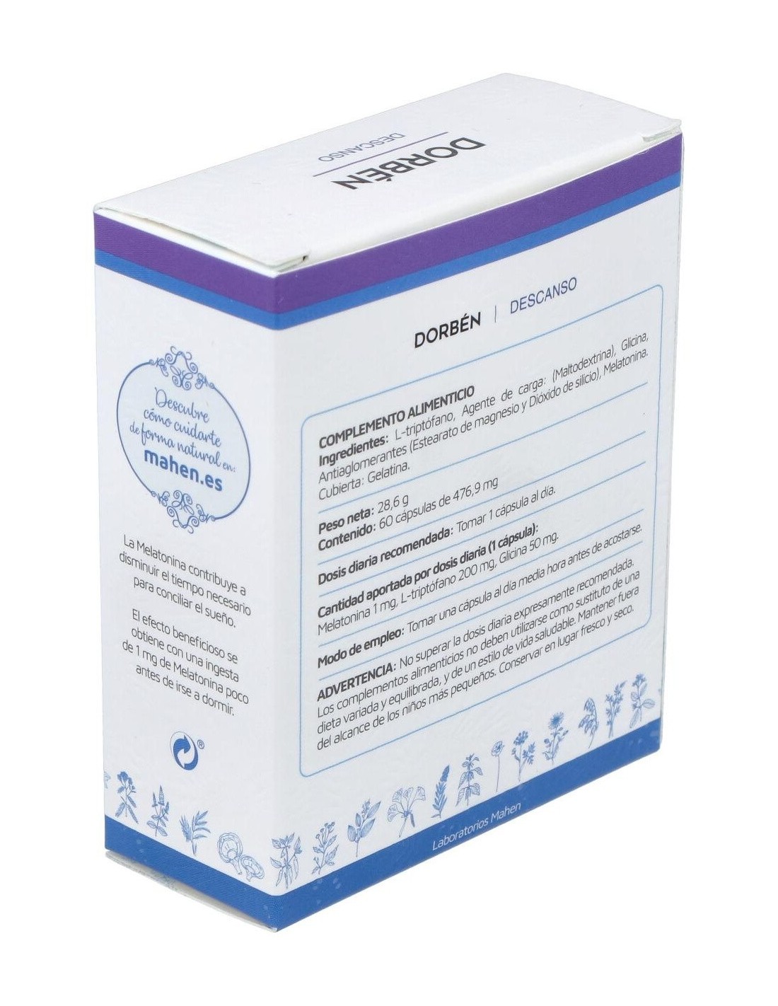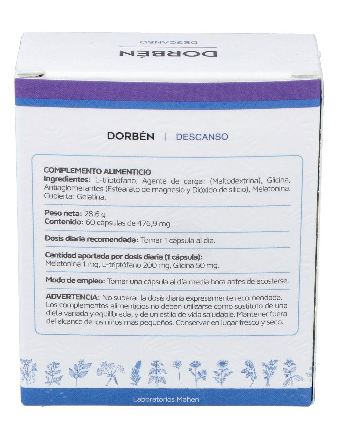 MAHENEl Dorben 60Cap. de Mahen es un suplemento nutricional dirigido a personas que buscan apoyar su bienestar diario, formulado con ingredientes seleccionados para contribuir a una nutrición equilibrada.