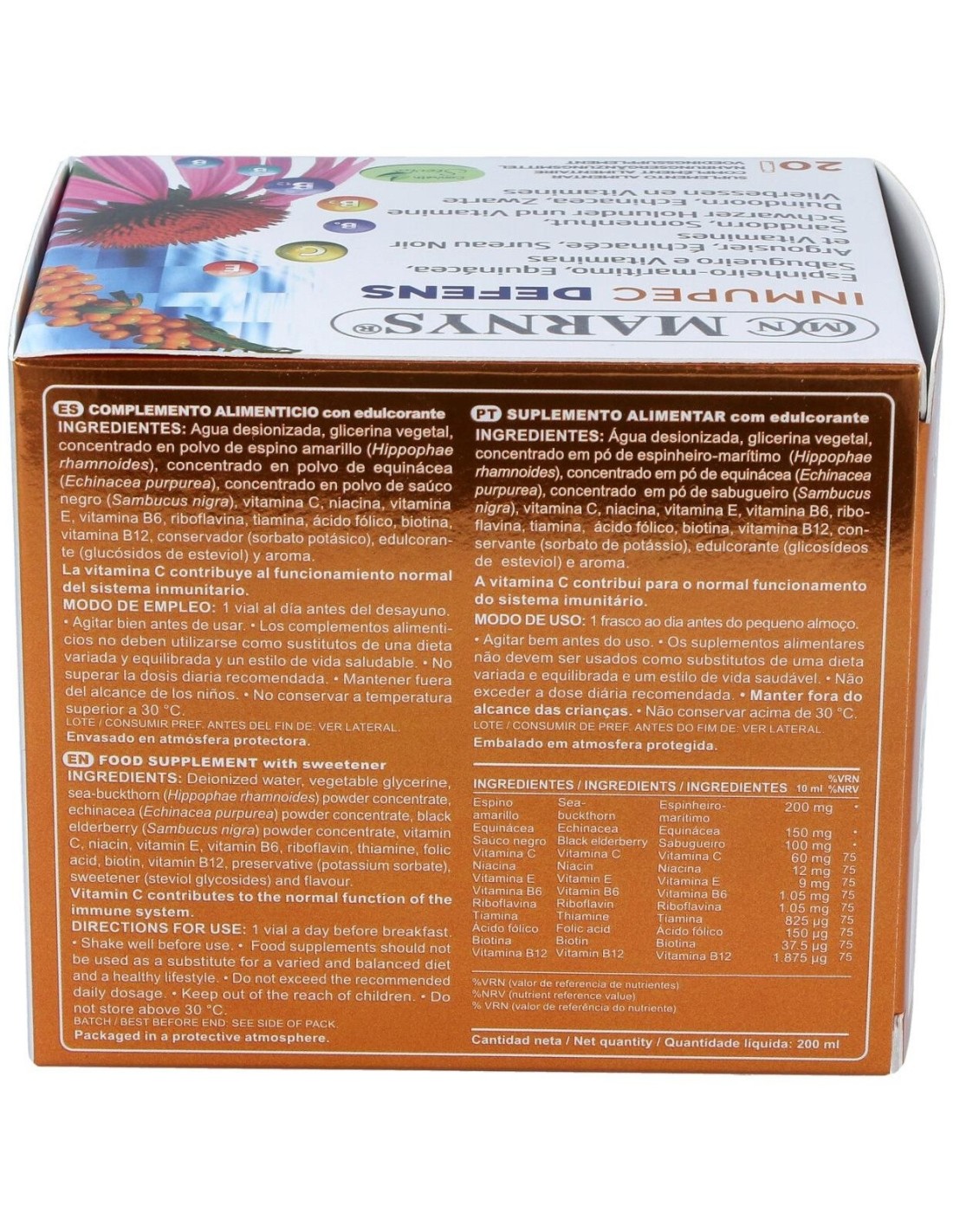 MARNYSComplemento alimenticio con ingredientes activos estandarizados de alta potencia que contribuye a la respuesta del organismo gracias a las vitaminas que contiene y ayuda al buen funcionamiento el sistema inmune. Complemento alimenticio con ingredientes activos estandarizados de alta potencia que contribuye a la respuesta del organismo gracias a las vitaminas que contiene y ayuda al buen funcionamiento el sistema inmune.
