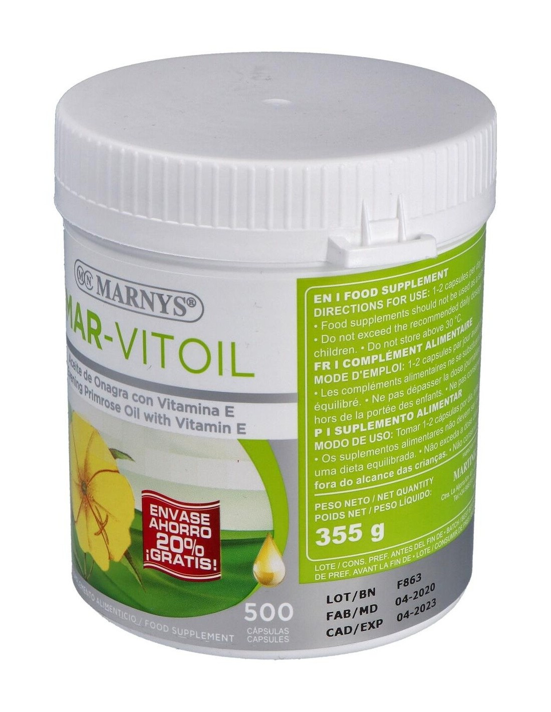 Aceite De Onagra (Mar-Vitoil) 500Mg. 500Perlas de Marnys