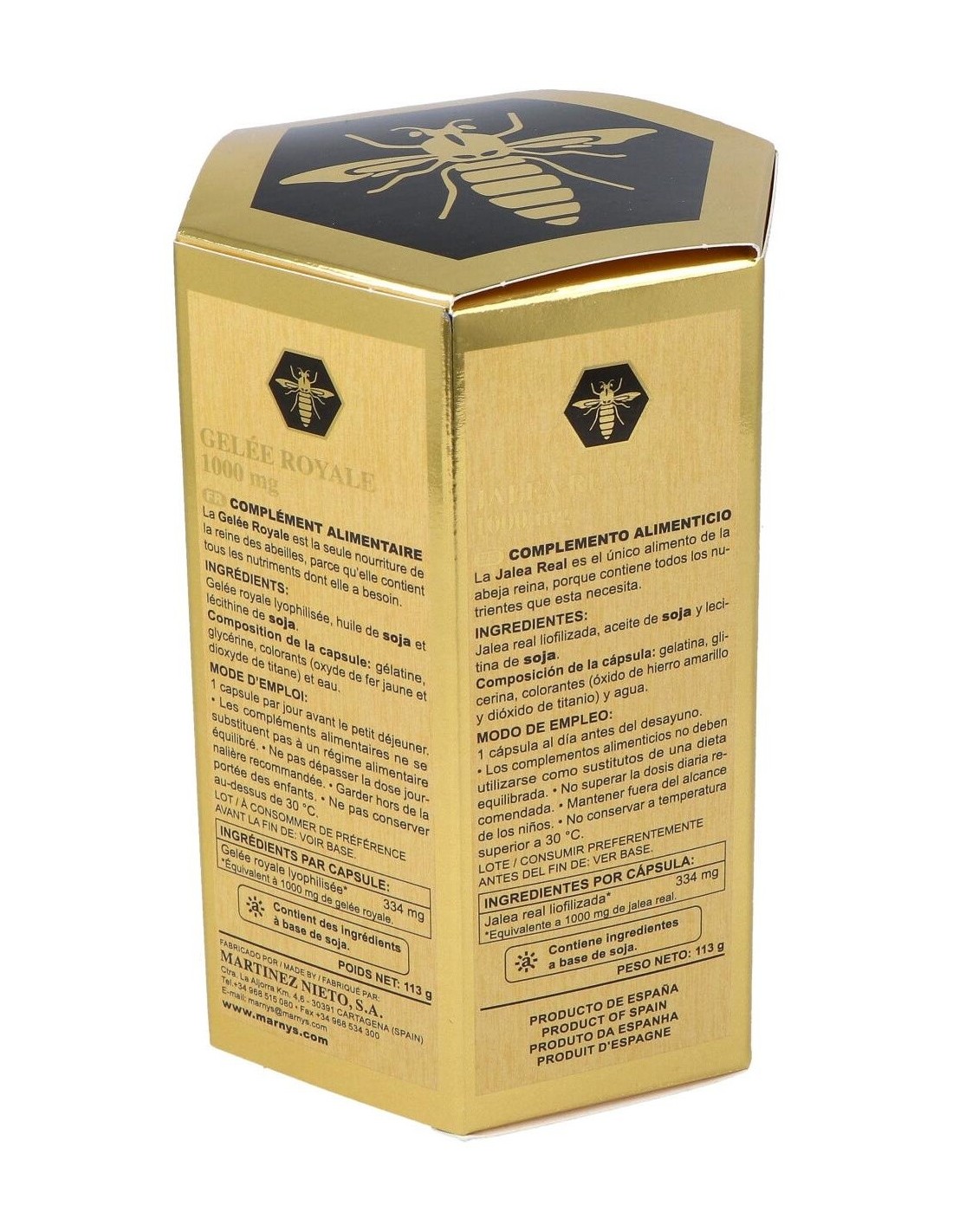 - Contiene 1000 mg de jalea real por dosis, un ingrediente conocido por su aporte nutricional que contribuye a mantener niveles adecuados de energía.