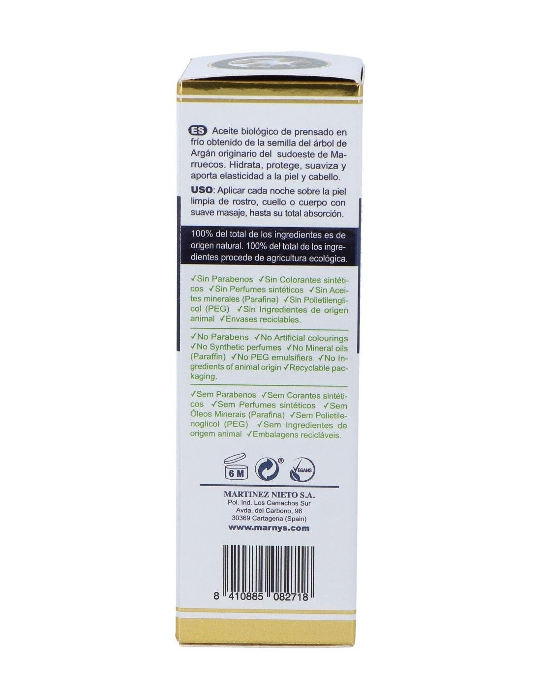 MARNYSEl Aceite de Argán es el más rico y preciado aceite para un cuidado intensivo y sus beneficios sobre la piel han sido confirmados científicamente. Por