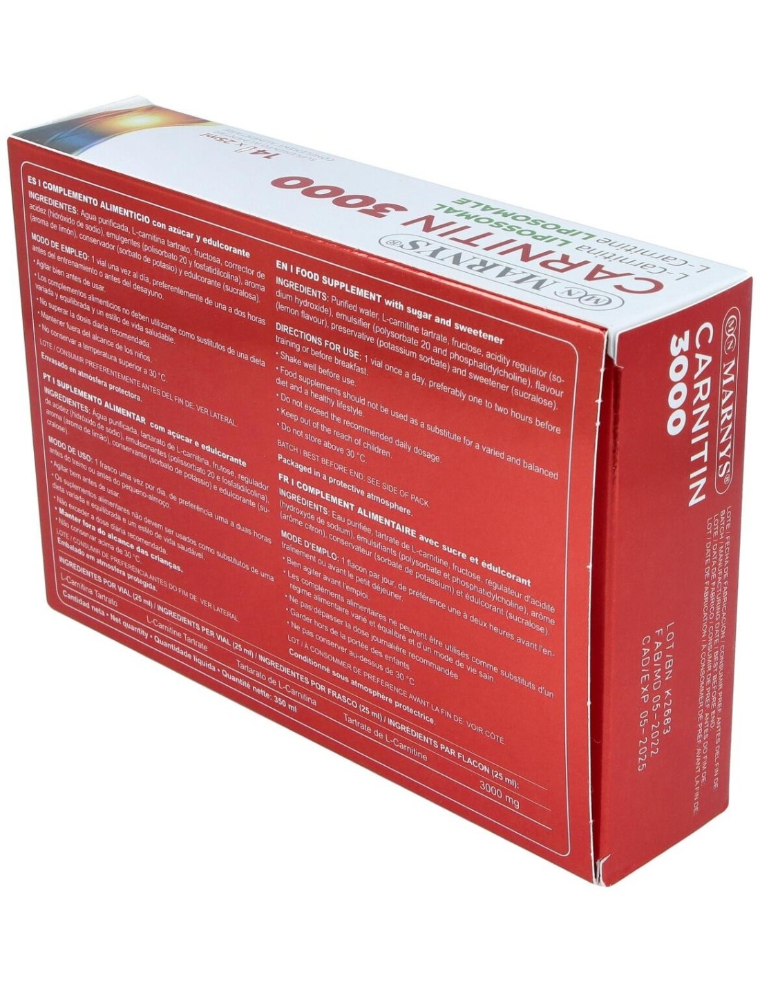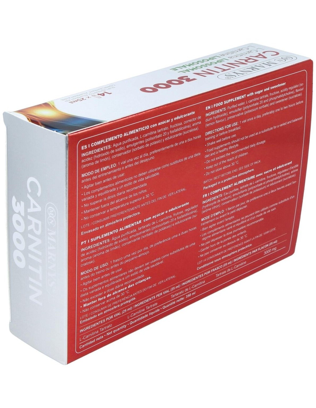- Cada vial contiene 25 ml de L-Carnitina con una concentración de 3000 mg, facilitando una ingesta precisa y cómoda.