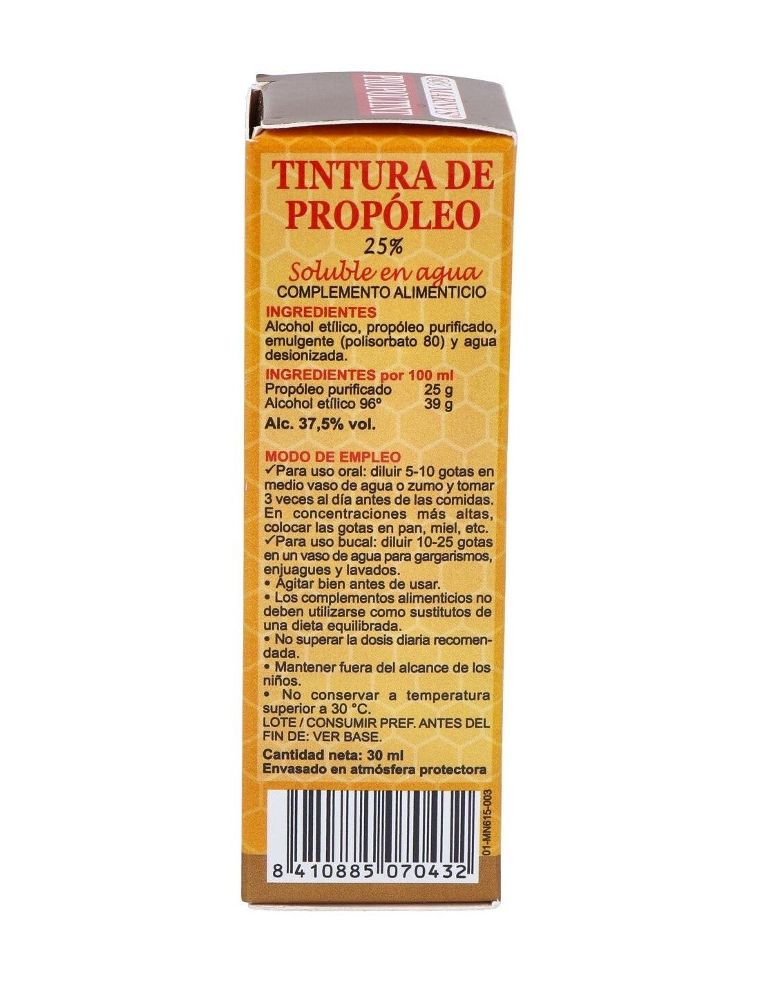 - Contiene un 25% de extracto de propóleo, lo que facilita una dosificación precisa y constante.