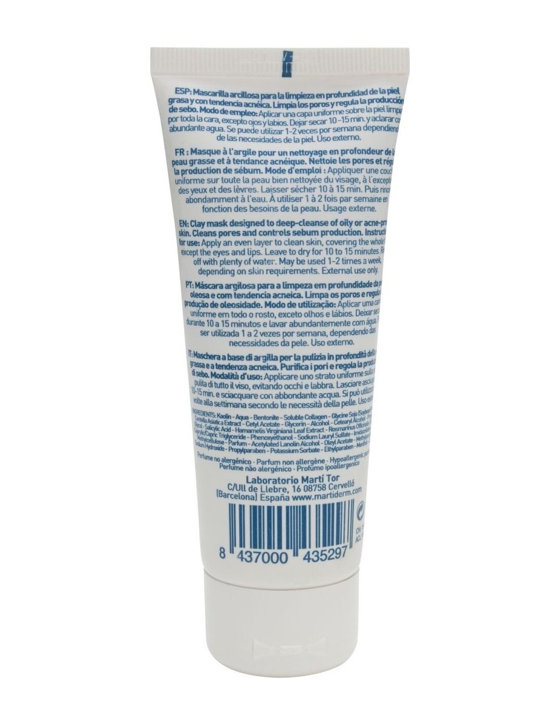 MARTIDERMMascarilla purificante y seborreguladora, de uso semanal, que limpia en profundidad e hidrata, dejando la piel más suave y reduciendo el tamaño del poro. Su acción astringente y seborreguladora elimina la grasa y las imperfecciones de la piel para un rostro equilibrado, uniforme y luminoso.