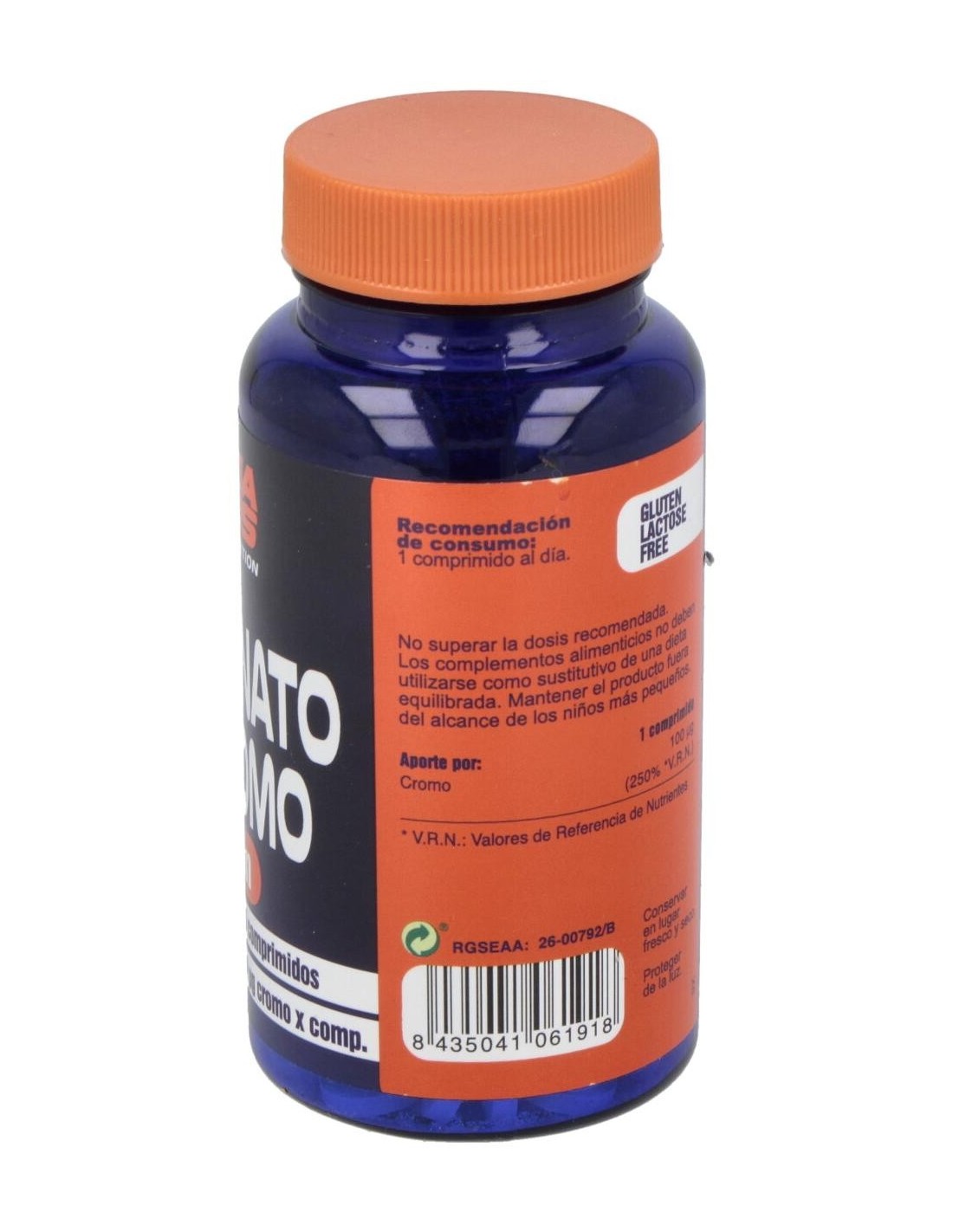 - Cada comprimido contiene 100 microgramos de cromo en forma de picolinato, facilitando su absorción.