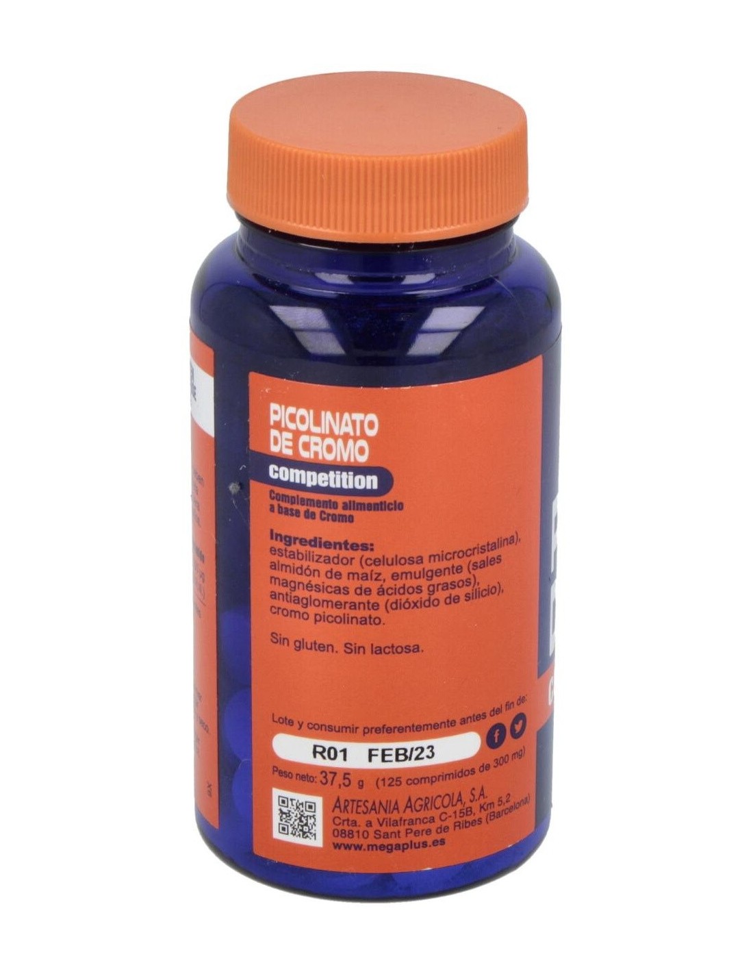 El Cromo Picolinato 100µg. 125Comp. de Mega Plus ofrece una opción práctica para quienes buscan complementar su dieta con cromo de forma constante y controlada.