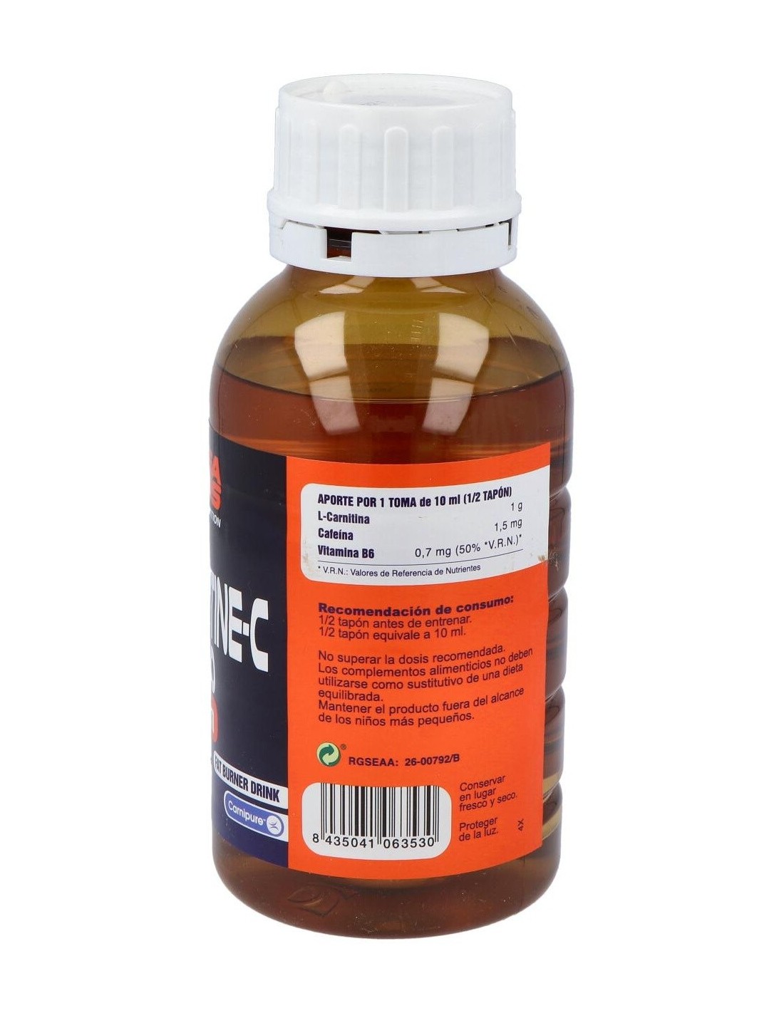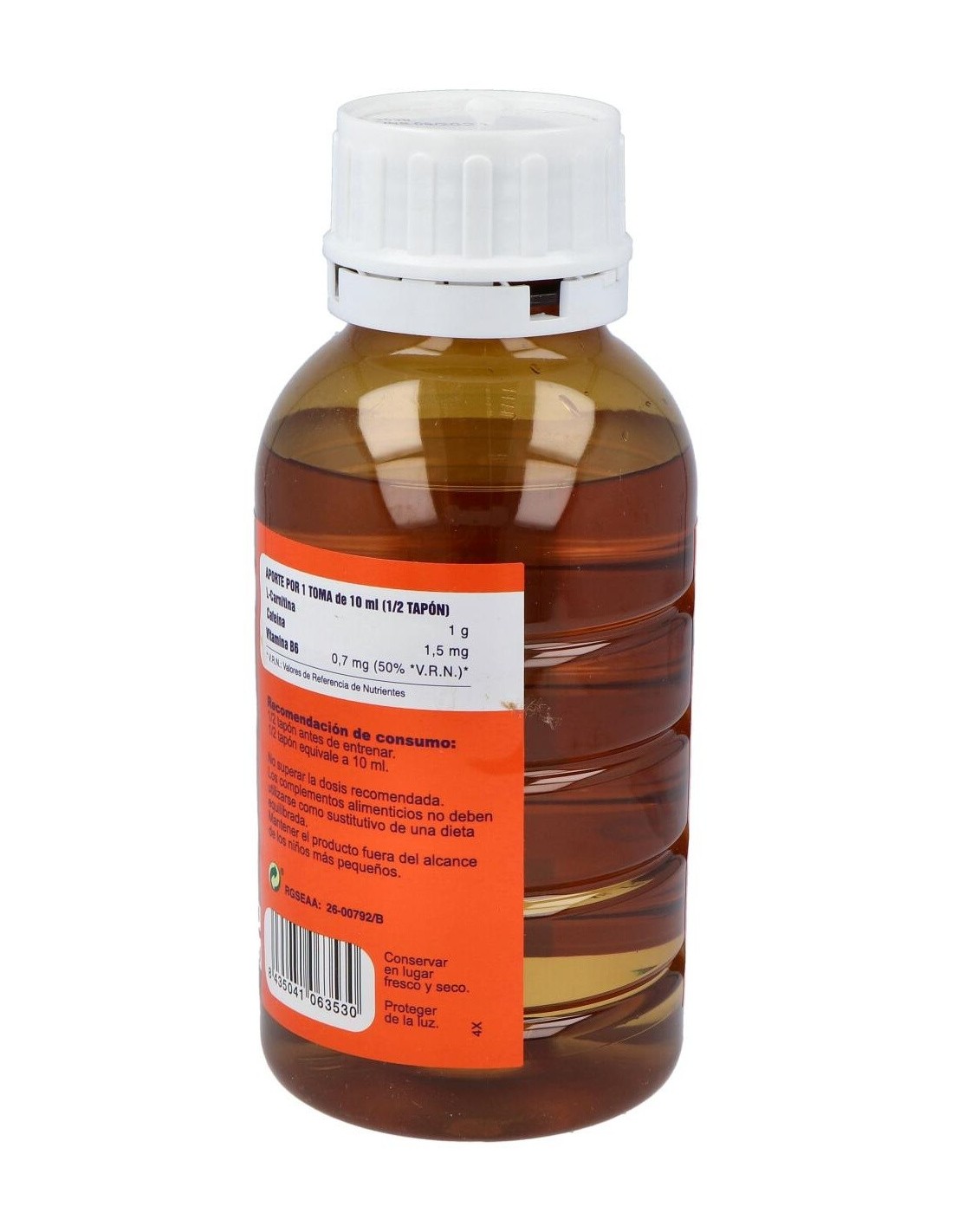 Medio tapón aporta 1000 mg de L-Carnitina, 0.7 mg de Vitamina B6 y 1,5 mg de cafeína.