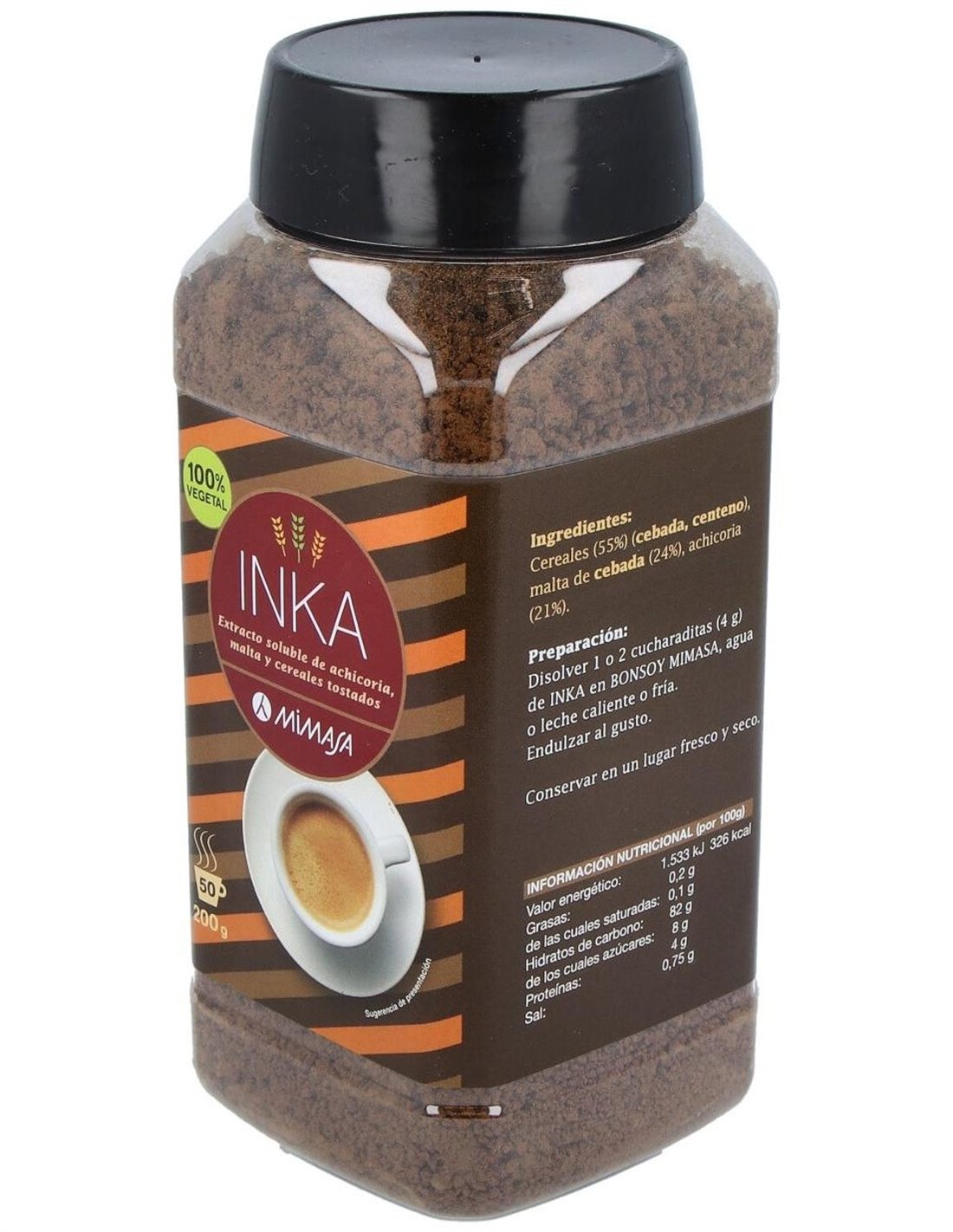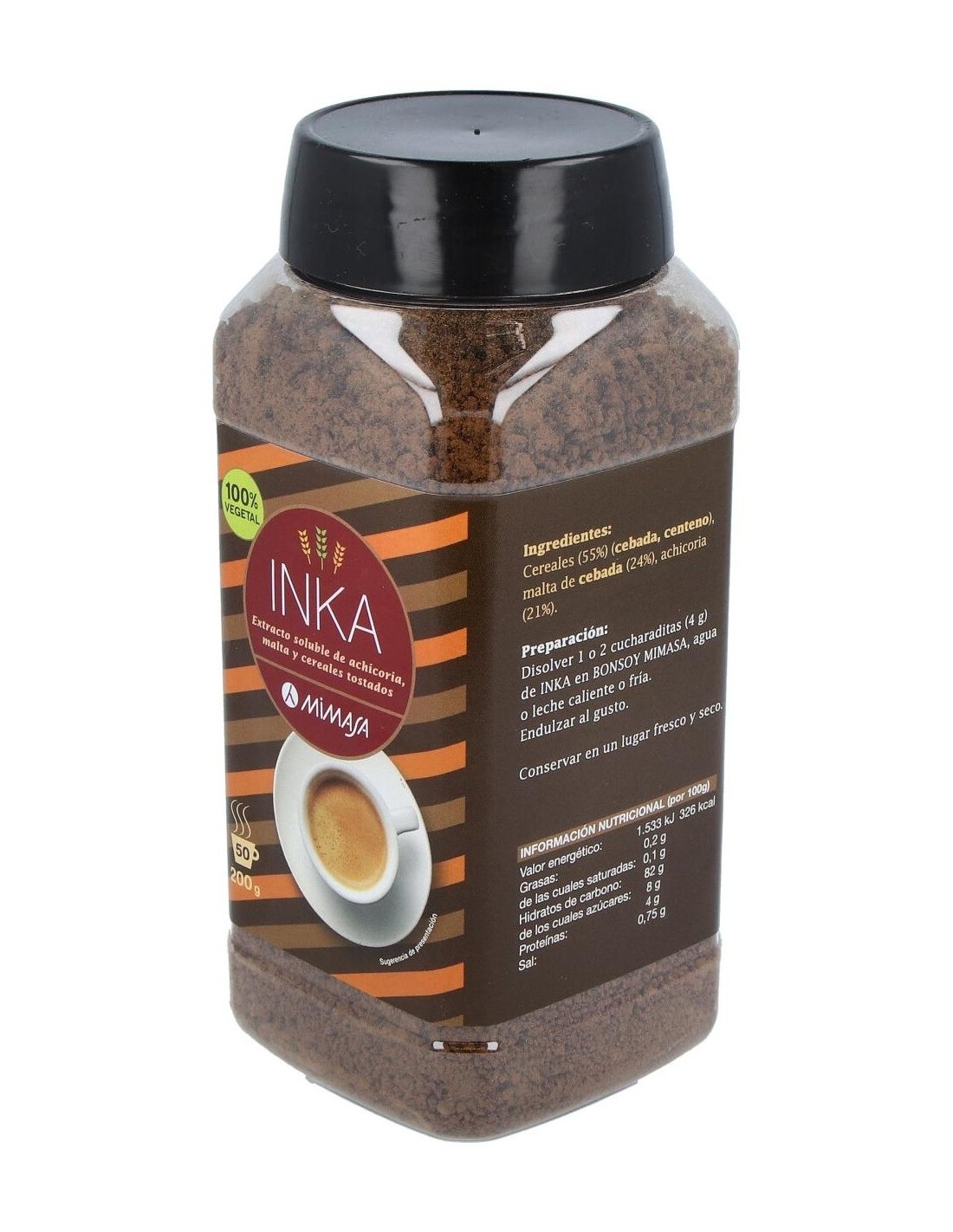 MIMASAEl Inka Café de Cereales 200Gr. de Mimasa es una bebida instantánea para consumidores que buscan una alternativa sin cafeína. Ofrece un sabor suave y nutritivo gracias a su mezcla de cereales tostados.