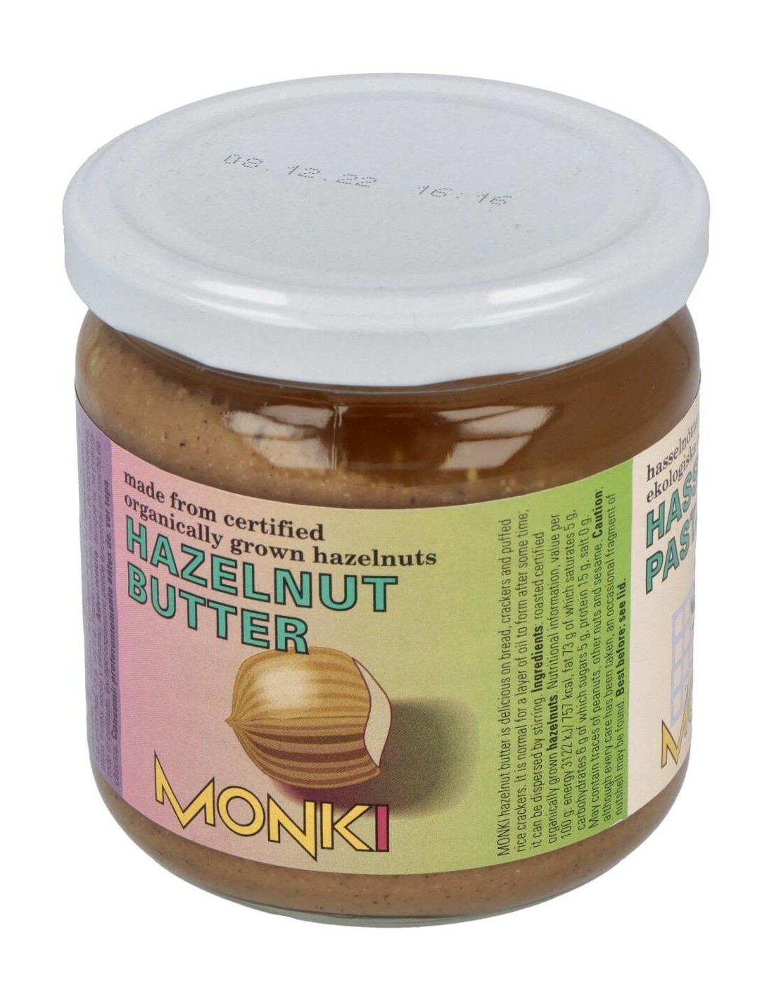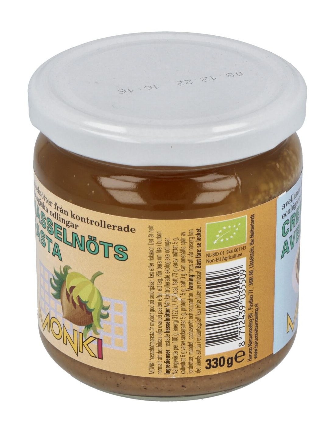 MONKIIngredientes:Avellanas tostadas*. (*) Ingrediente procedente cultivo ecológico controlado.Valor nutricional por 100 gramos: