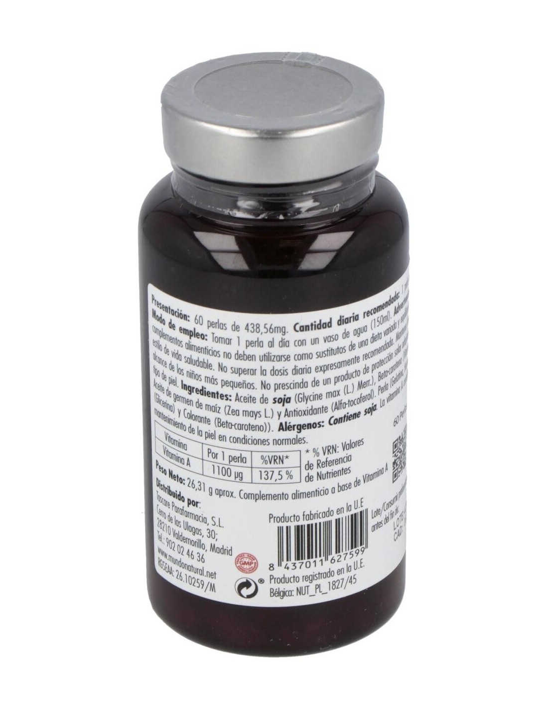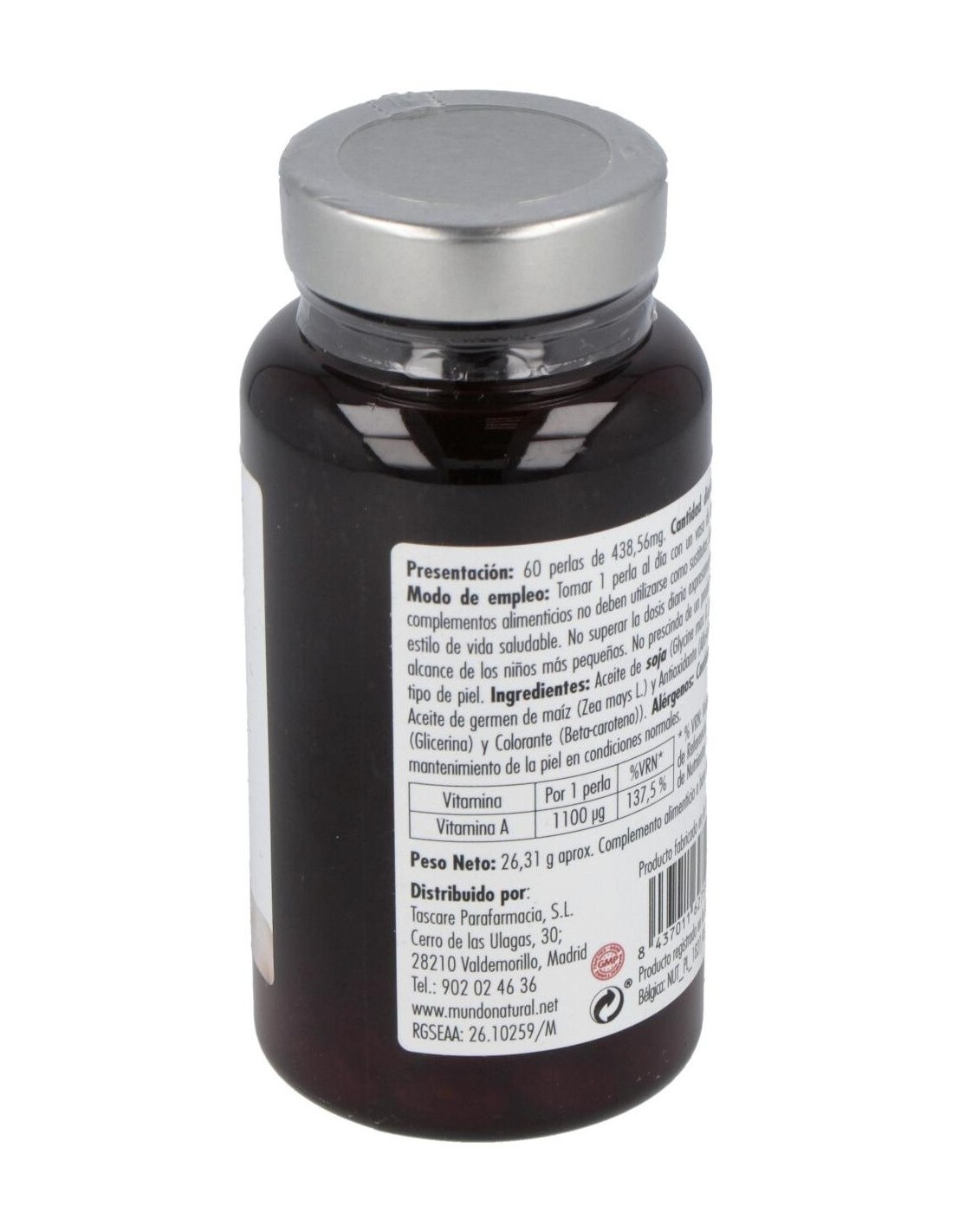 MUNDONATURALComplemento alimenticio a base de vitamina A. La vitamina A contribuye al mantenimiento de la piel en condiciones normales.