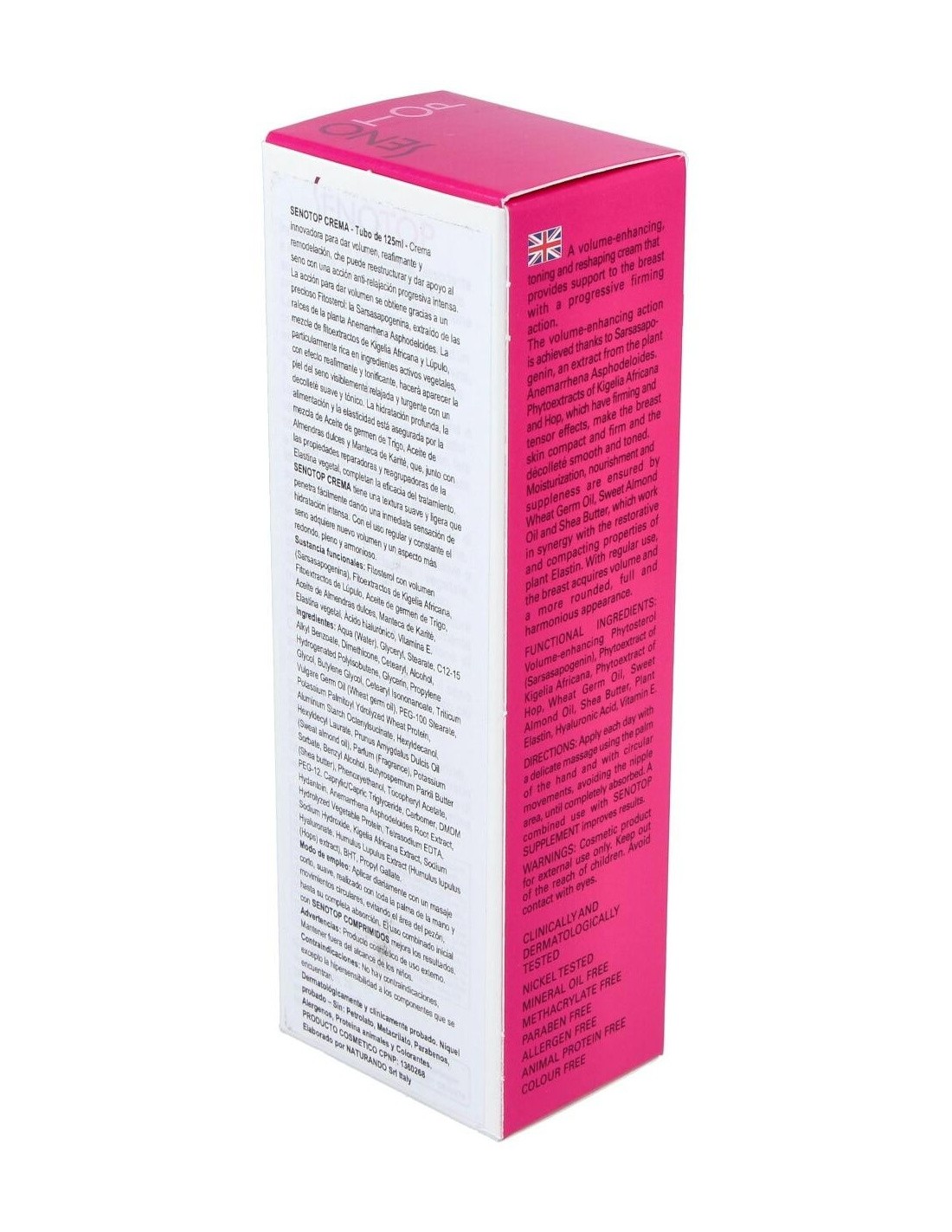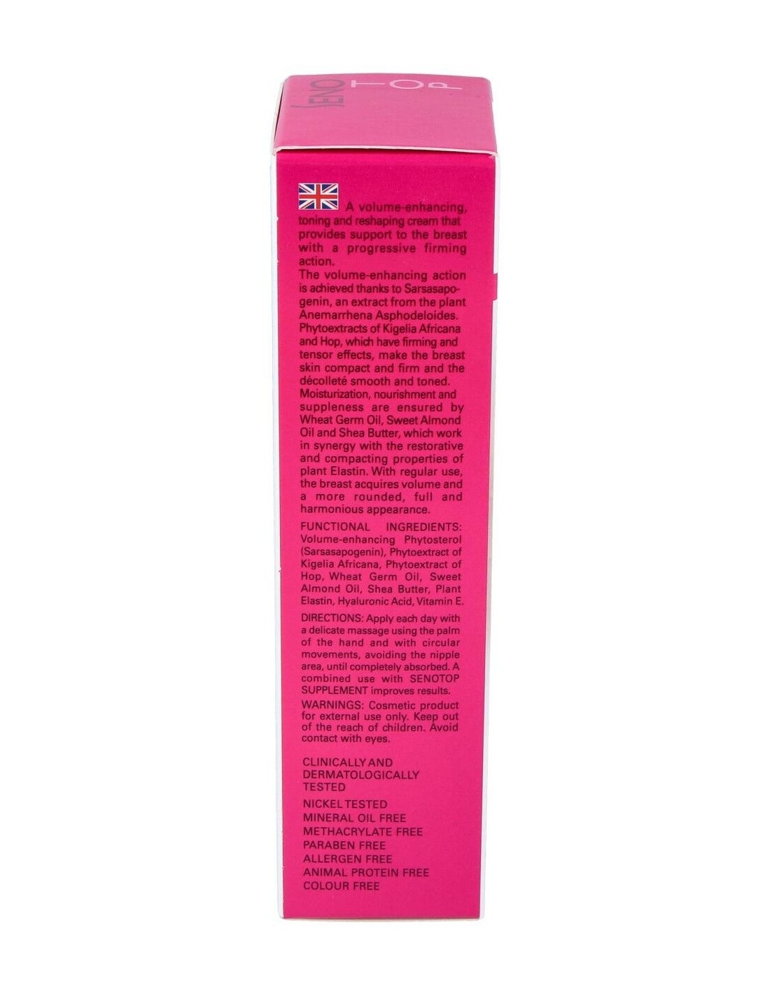 Tiene una textura suave y ligera que penetra fácilmente dando una inmediata sensación de hidratación intensa. Con el uso regular y constante sus componentes aportan al seno propiedades de volumen y un aspecto más redondo, pleno y armonioso. Dermatológicamente y clínicamente probado. Níquel probado. Sin: Petrolato, Metacrilato, Parabenos, Alergénos, Proteína animales ni Colorantes.